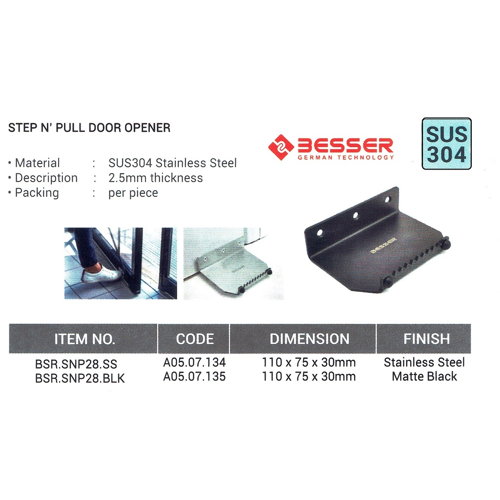 STEP N' PULL DOOR OPENER BLACK or Satin stainless