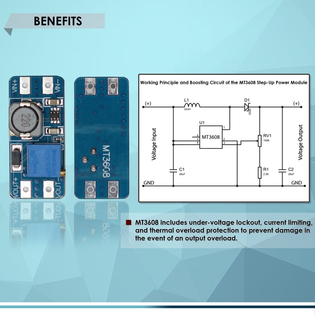 STEP UP BOOST CONVERTER MODULE ADJUSTABLE VOLTAGE REGULATOR BOARD MT3608 2A