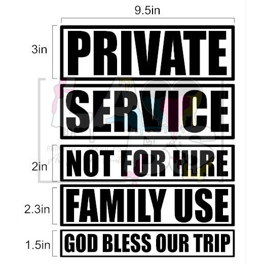 STICKER SIGNAGES WATERPROOF, SERVICE, PRIVATE, FAMILY USE, NOT FOR HIRE FOR TRICYCLE ETC.