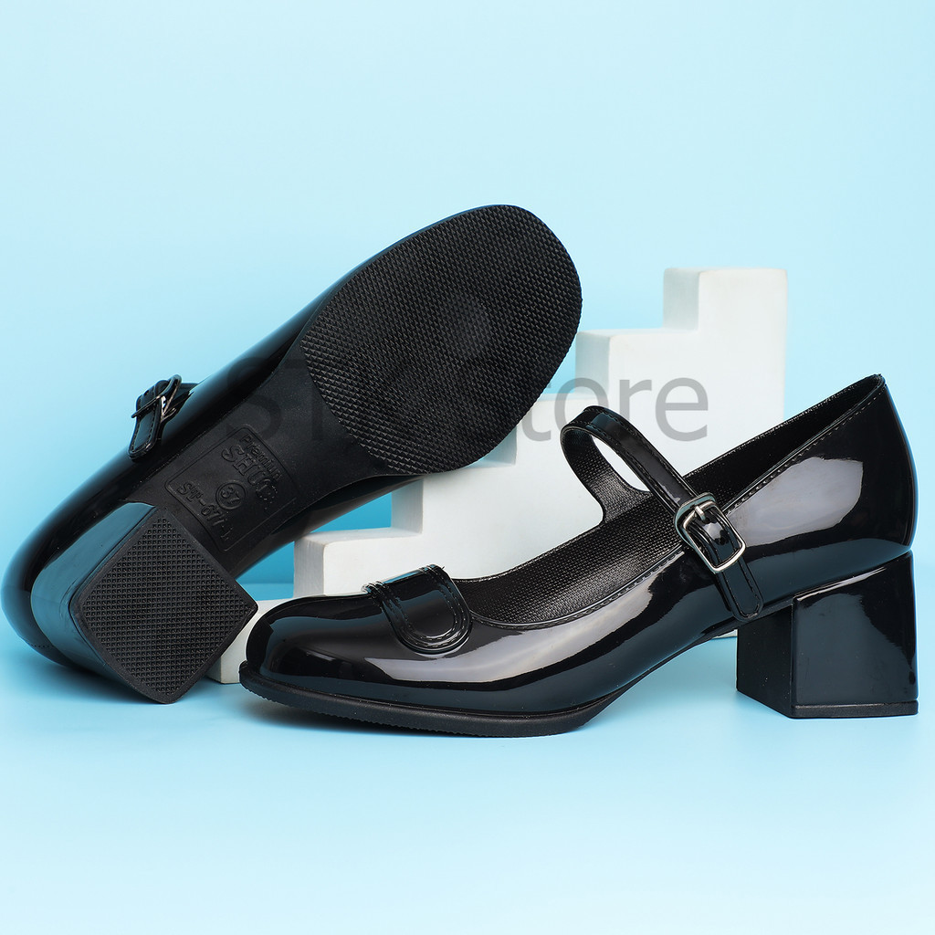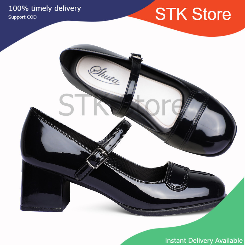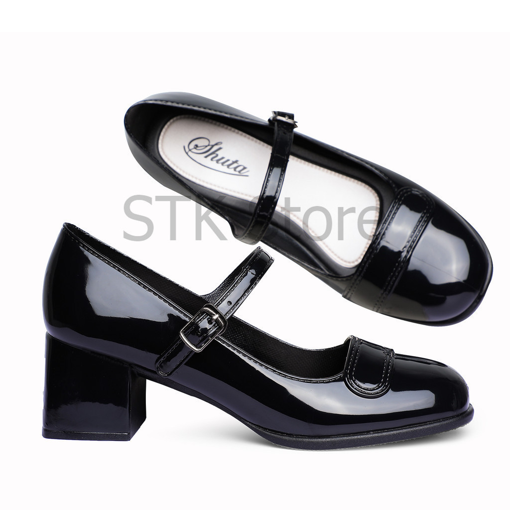 STK677 SHUTA Premium Black Shoes Fashion Women Professional Retro Mary Jane Shoes Thick Heeled Shoes