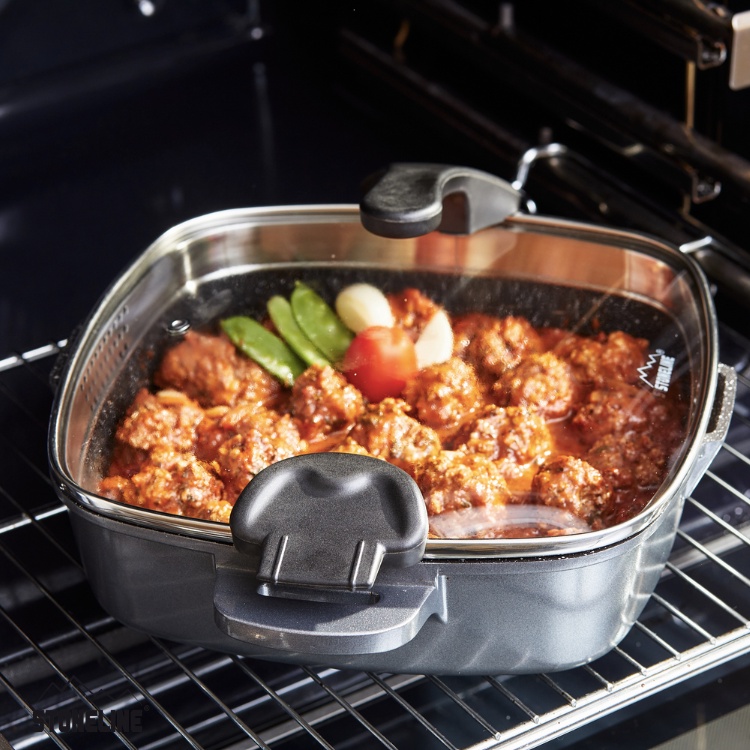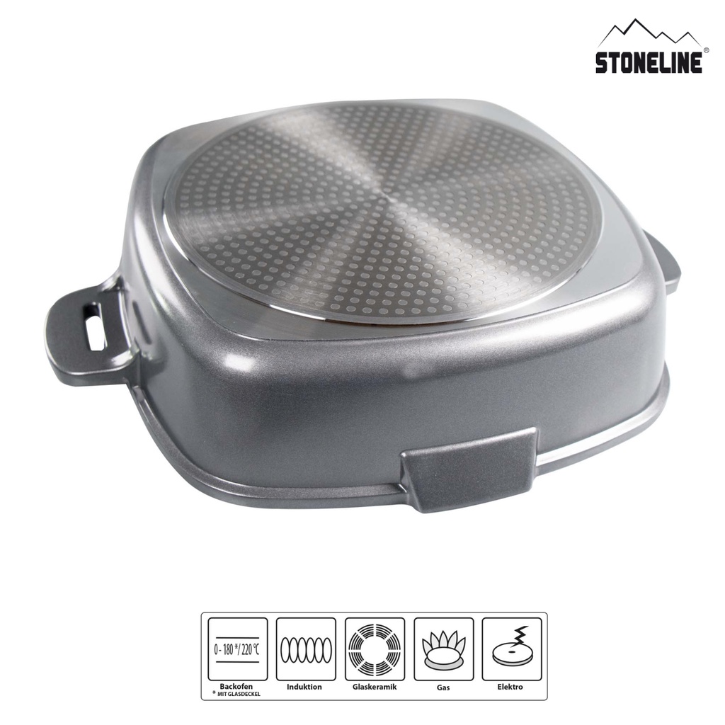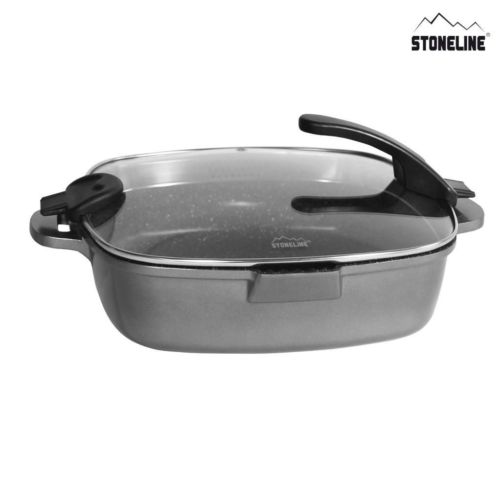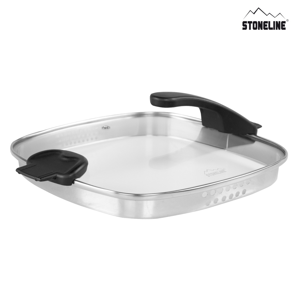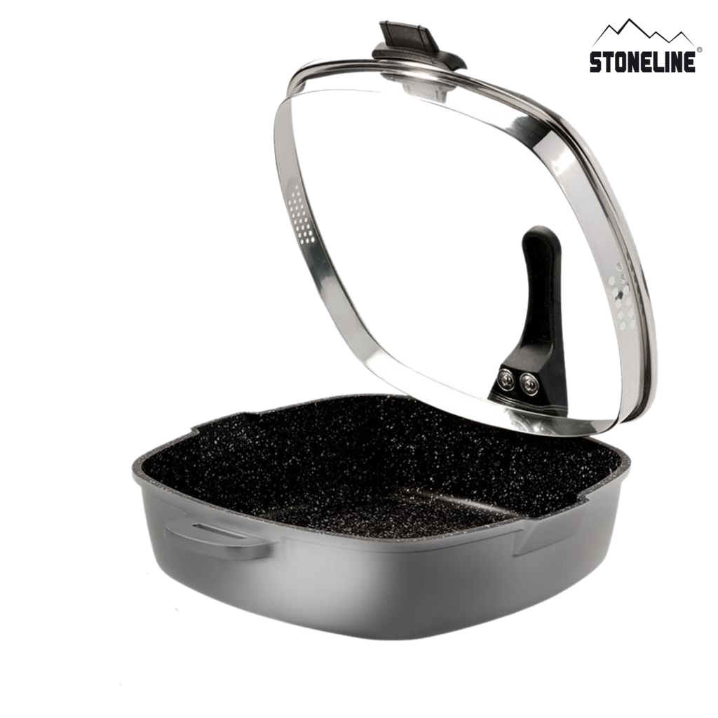 STONELINE XTREME Square pan 28 x 28 cm, with sieve glass lid Item No. 15943