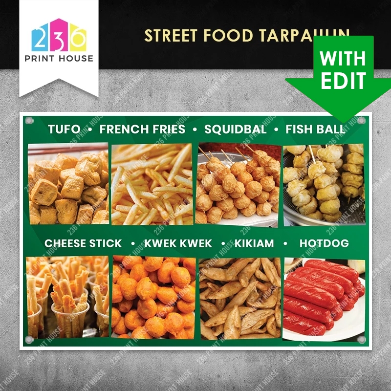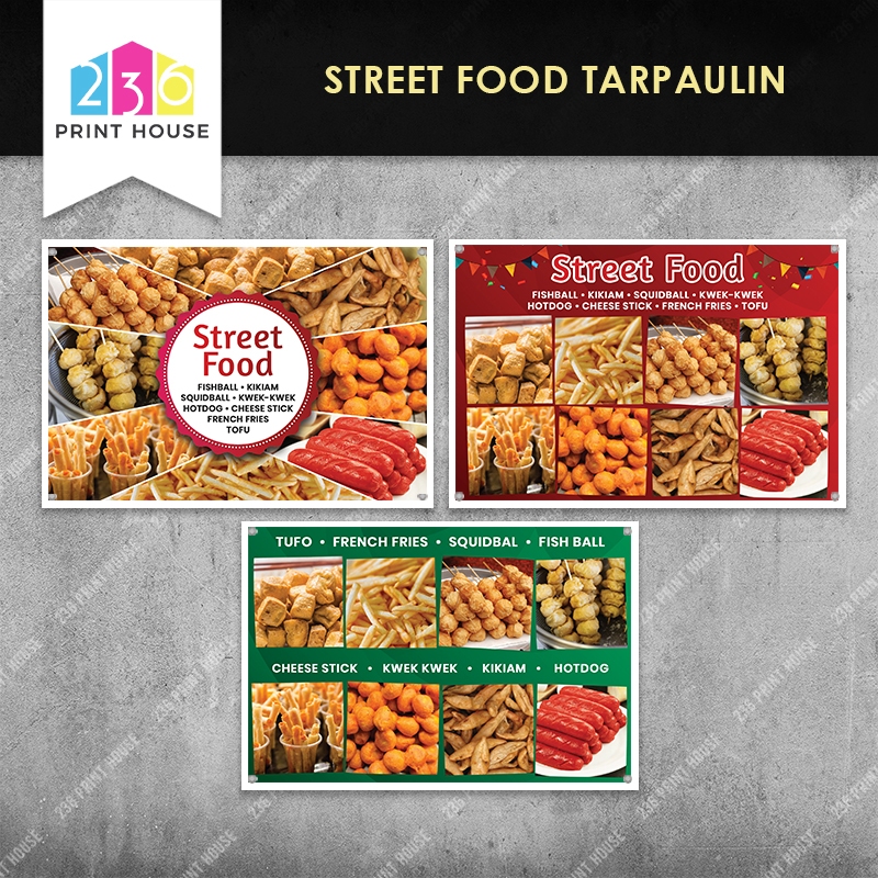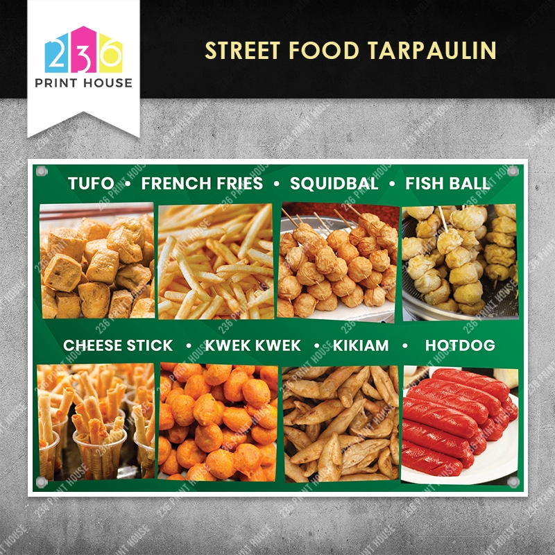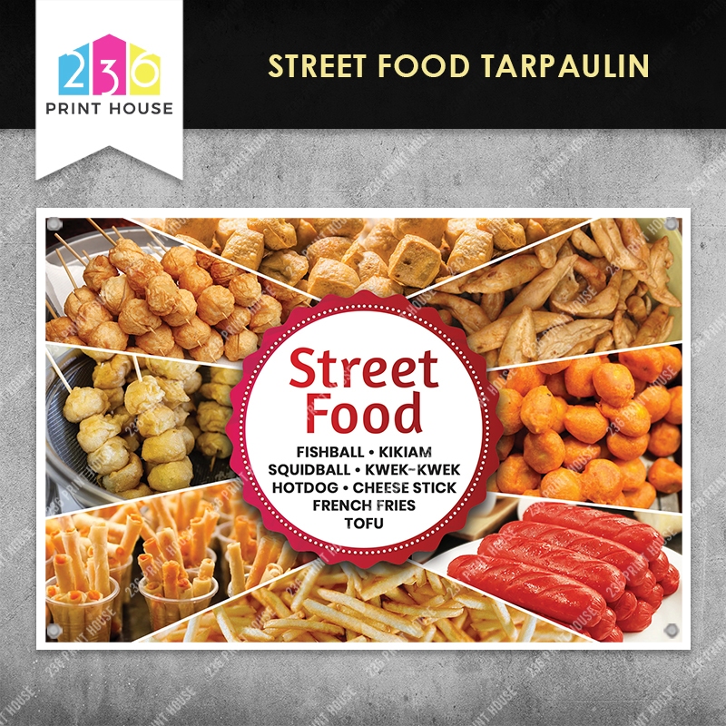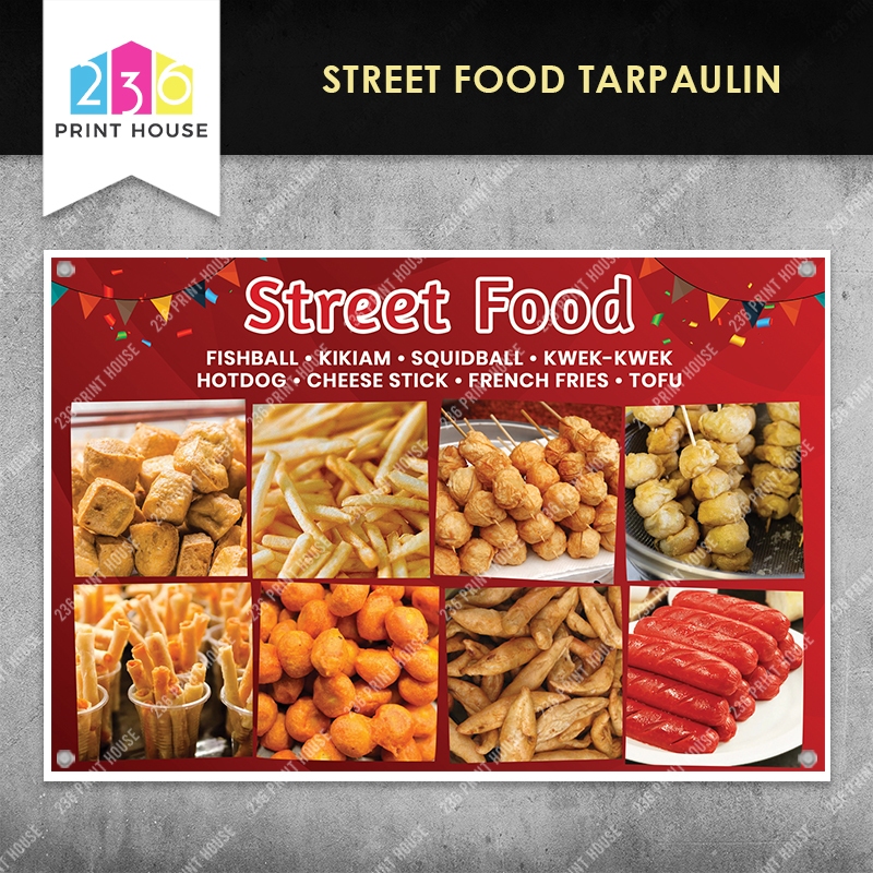 STREET FOOD Tarpaulin Banner • Fishball, Kikiam, Squidball • Food Cart Tarpaulin • FREE Eyelets