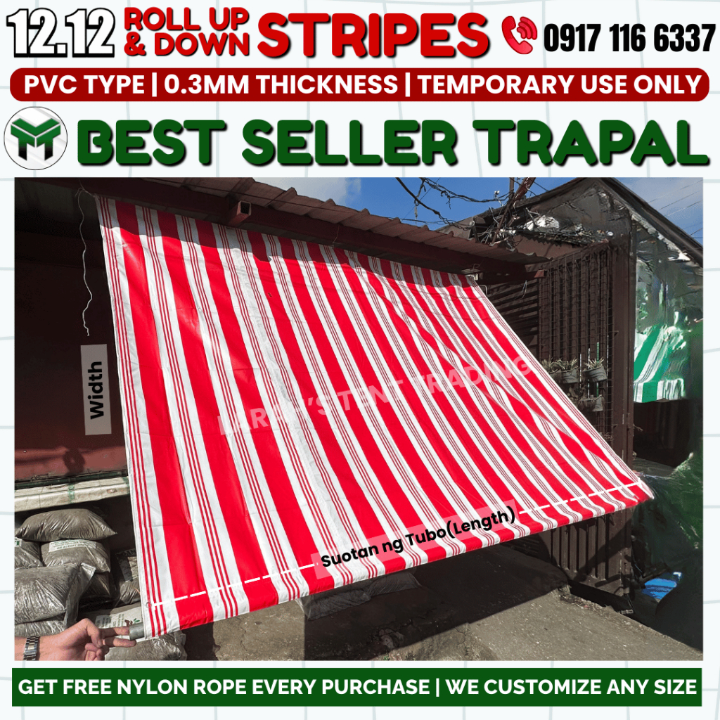 STRIPES ROLL UP AND ROLL DOWN HIGH QUALITY PVC Type trapal Lona Tolda Waterproof lona tarp 9FT