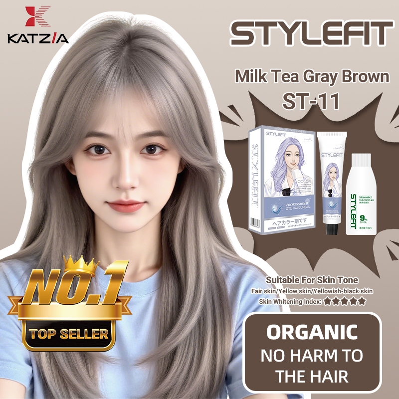 STYLEFIT Hair Color Milk Tea Ash Hair Color【100ml Hair Dye+100ml Oxidant】Hair Color Permanent ST11