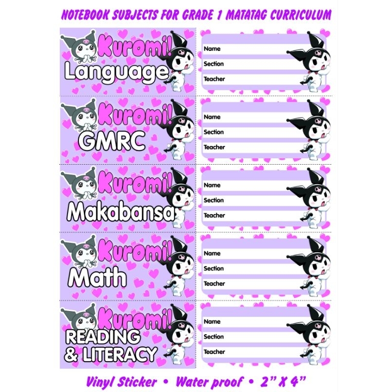 SUBJECT STICKER Grade 1 MATATAG CURRICULUM SY:2024-2025