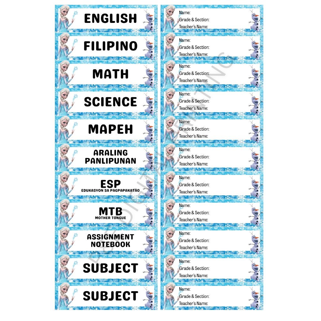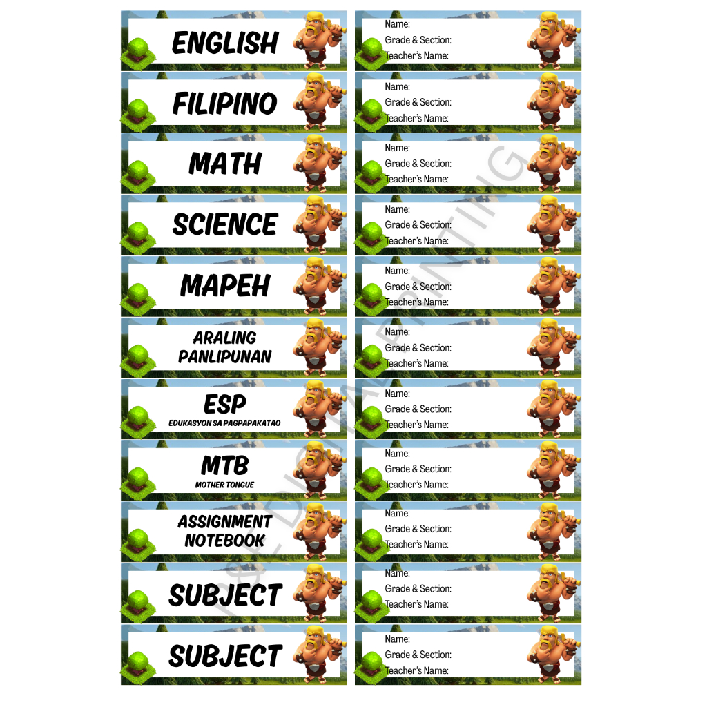 SUBJECT STICKER LABEL UPDATED SUBJECT SY 2025-2026 KINDER,G1-10 AVAILABLE