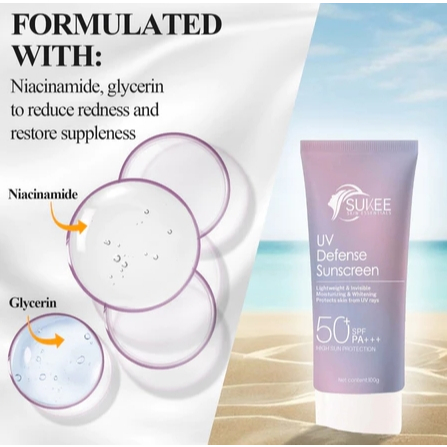 SUKEE Sunscreen UV Defense Original Sun Screen SPF50 PA+++ Moisturizing Skin Niacinamide Sunblock