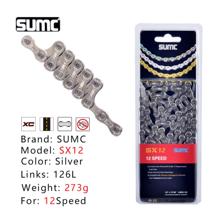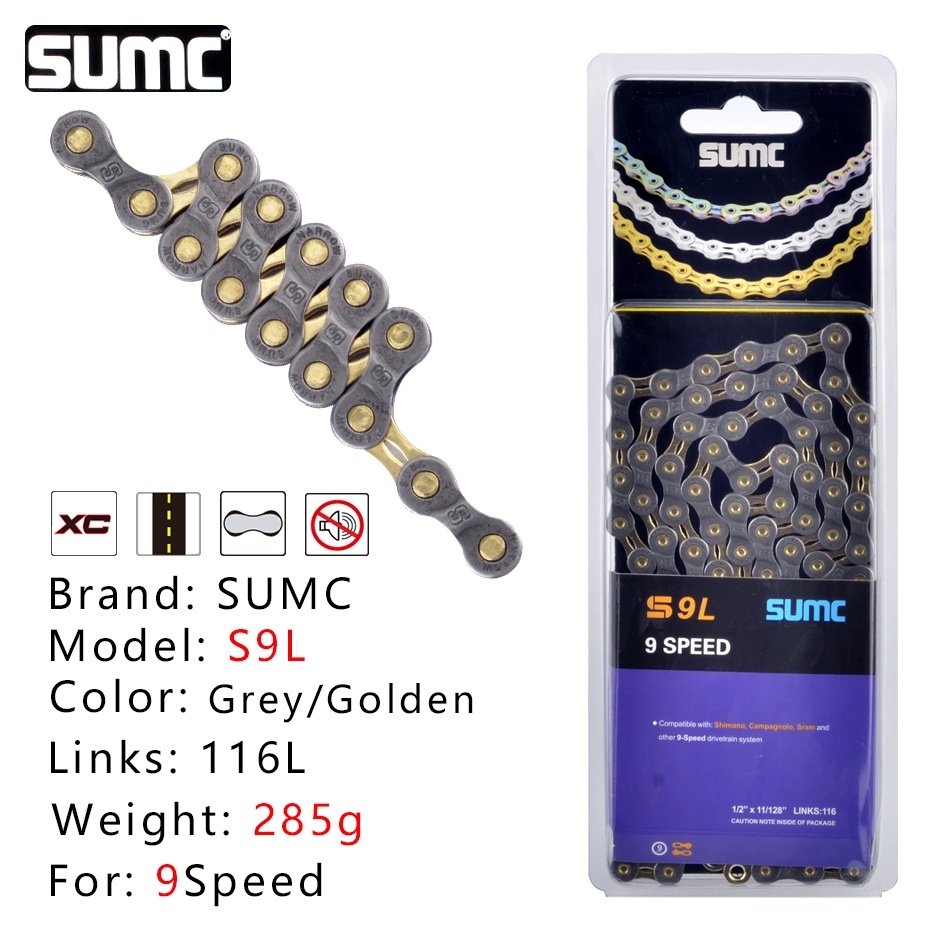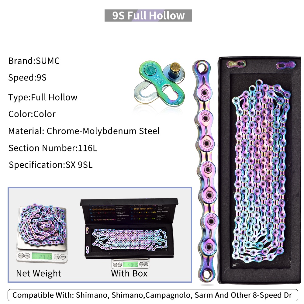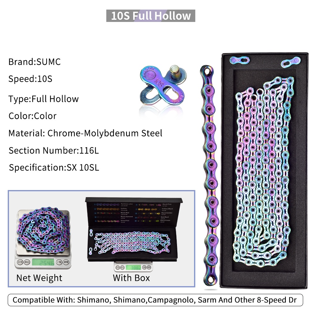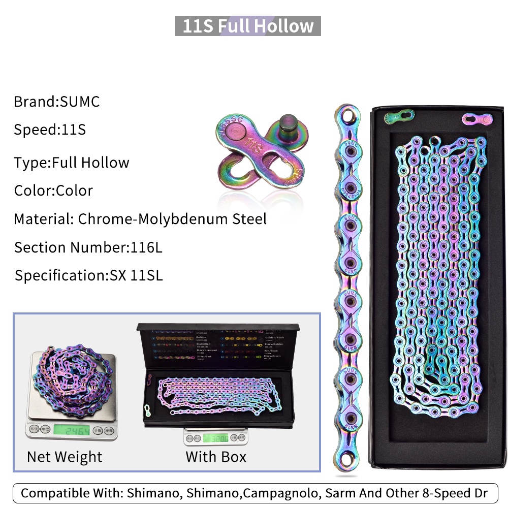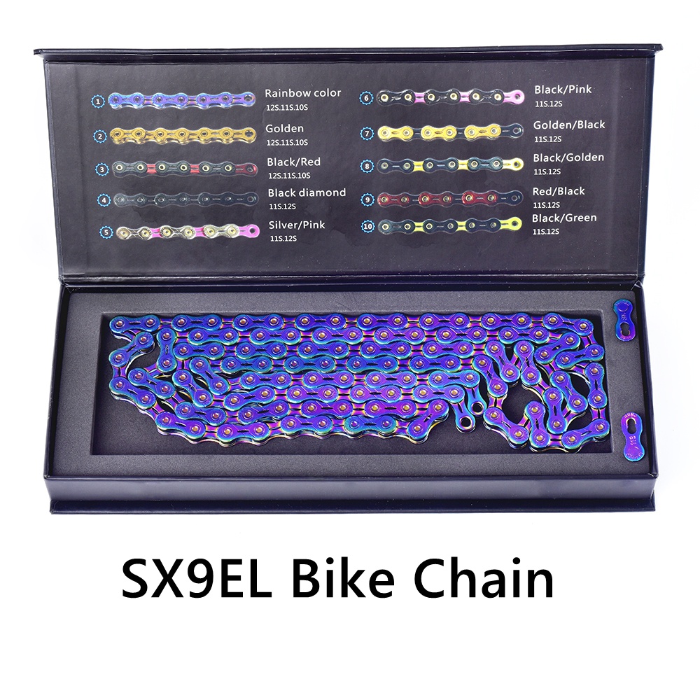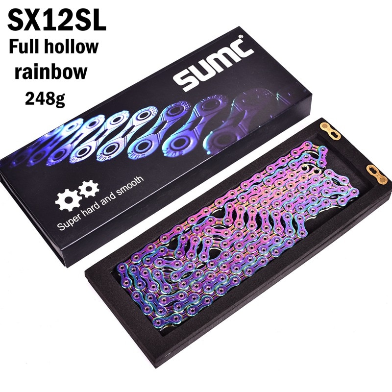 SUMC Bicycle chain Gold Rainbow Bike Chain X8 X9 X10 X11 X12 Super Light For 8 9 10 11 12Speed MTB/Road Bicycle 116L Hollow