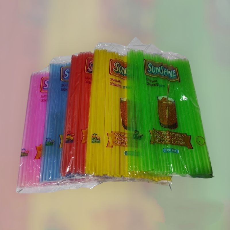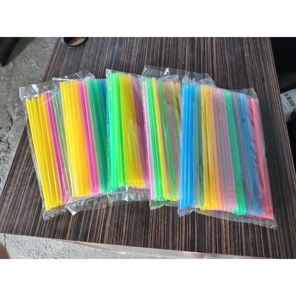 SUN SHINE DISPOSABLE PLASTIC STRAW NEON COLORS approx. 50 PCS only assorted colors