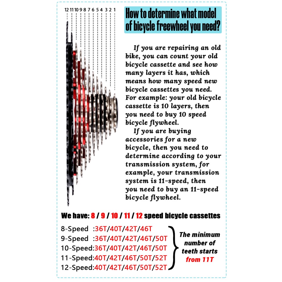 SUNSHINE 8 9 10 11 12 Speed Cogs MTB Mountain Bike Road Bike Cassette Freewheel 36T/40T/42T/50T/52T