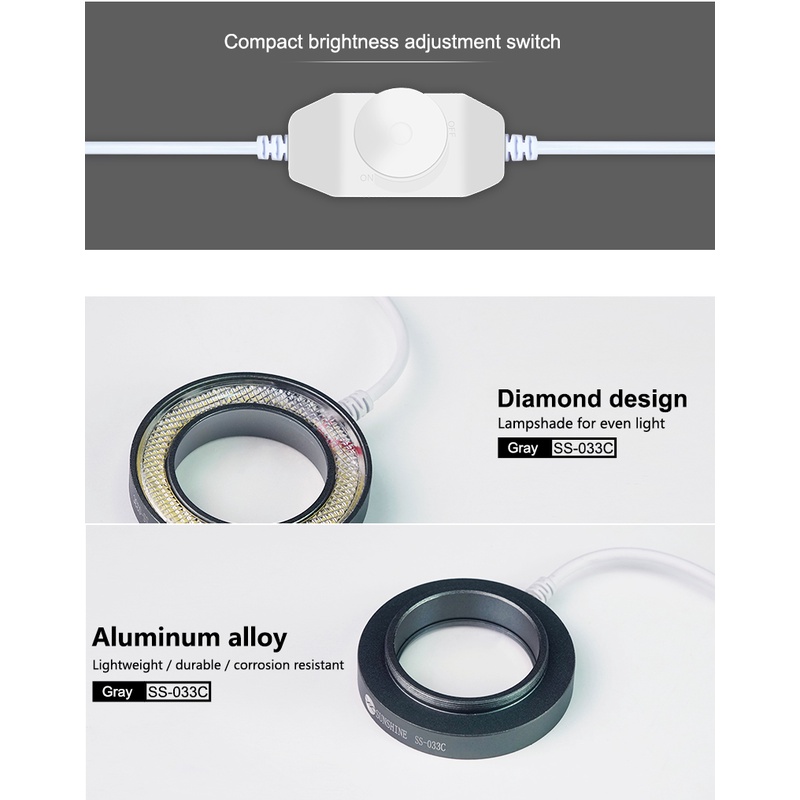 SUNSHINE SS-033C LED Microscope Light USB Adjustable Round Lamp UV Oil Smoke Proof Mirror Phone Repair Microscope Lamp