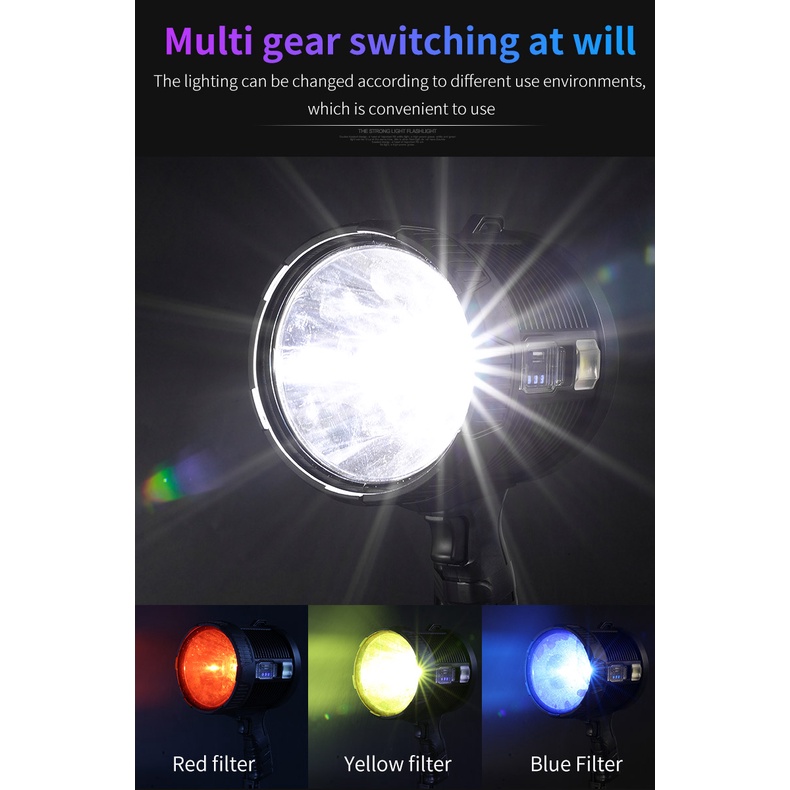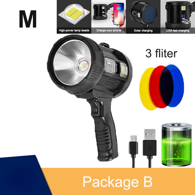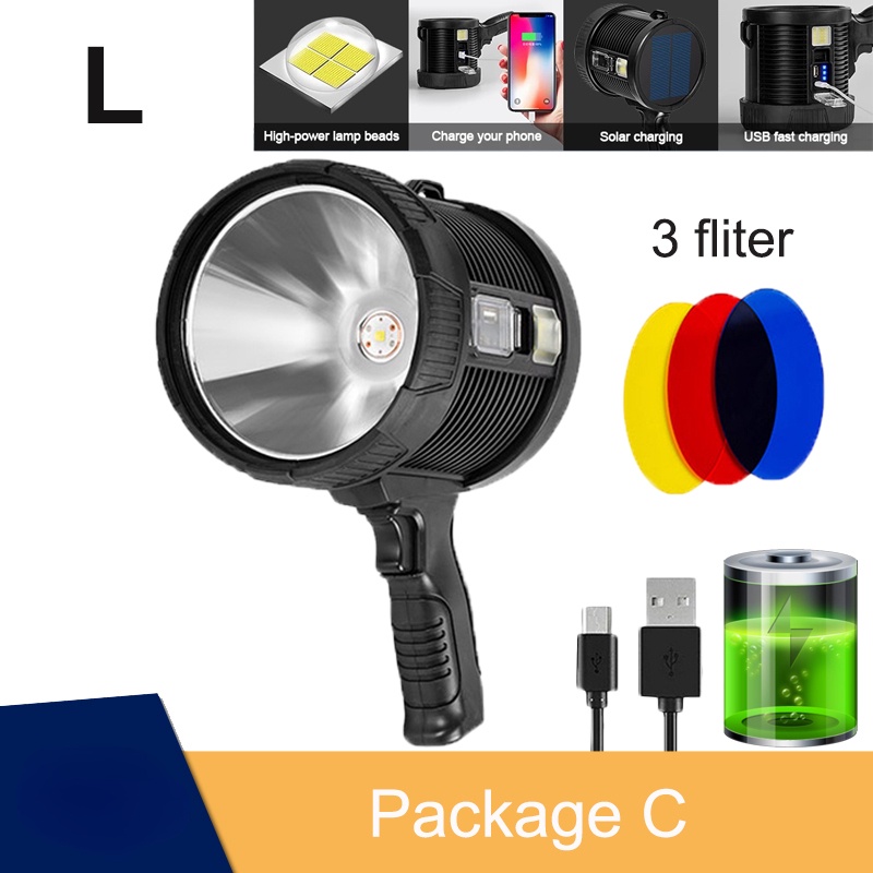 SUPER Big flash light super bright long range search light heavy duty flashlight rechargeable solar flashlight emergency light solar rechargeable flashlight waterproof tactical flashlight police flashlight powerful work lamp torch light