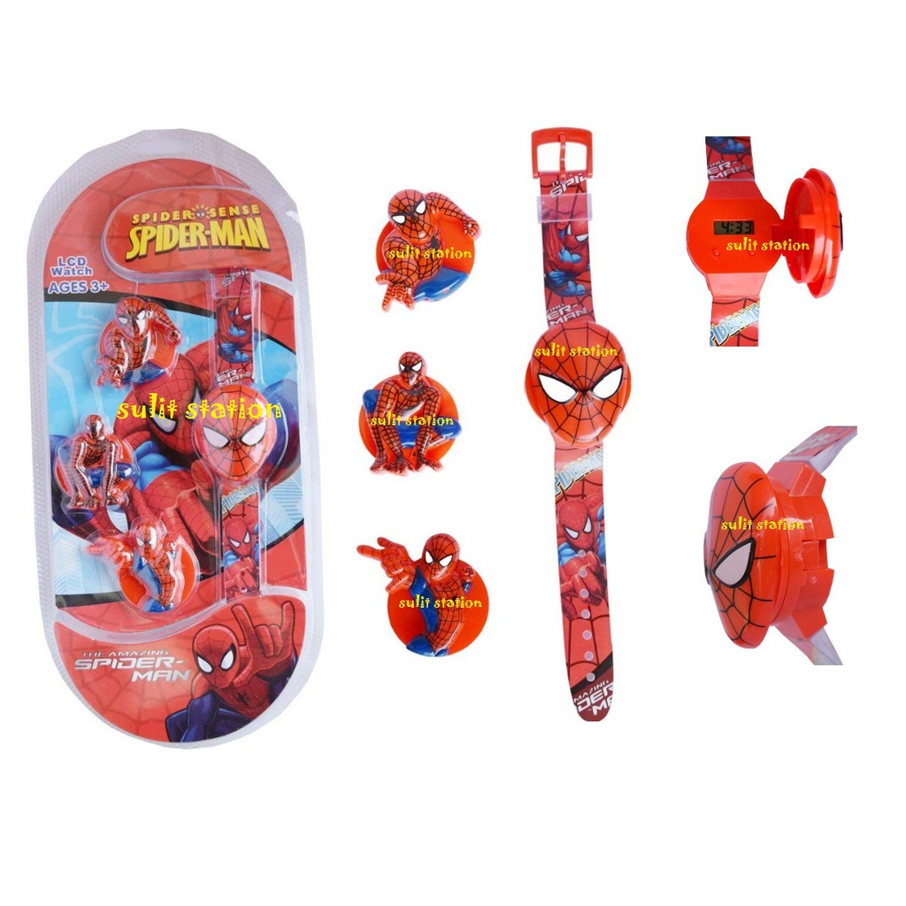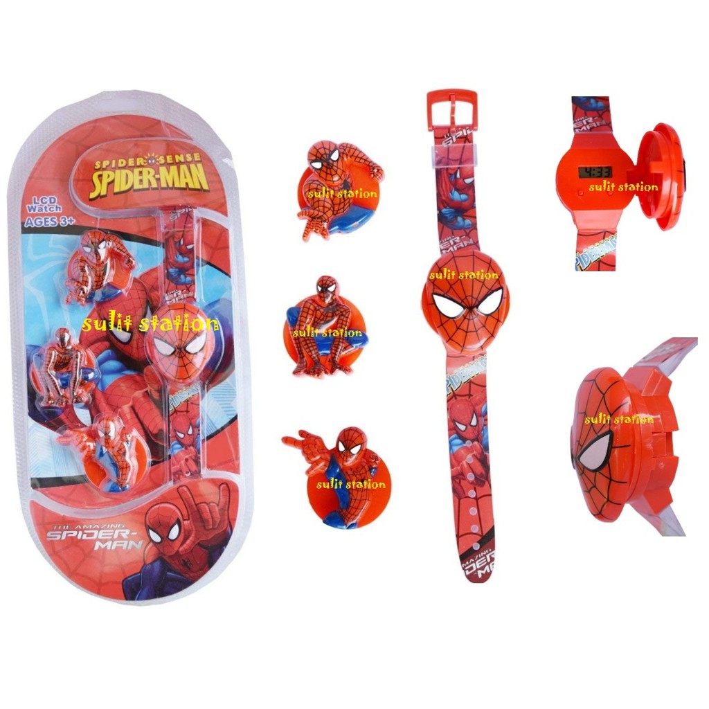 SUPER HERO spider SPIDERMAN man 3D REPLACEABLE CHANGEABLE HEAD TOP COVER DIGITAL KIDS WATCH WATCHES