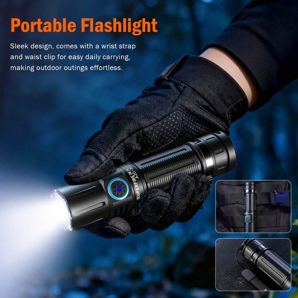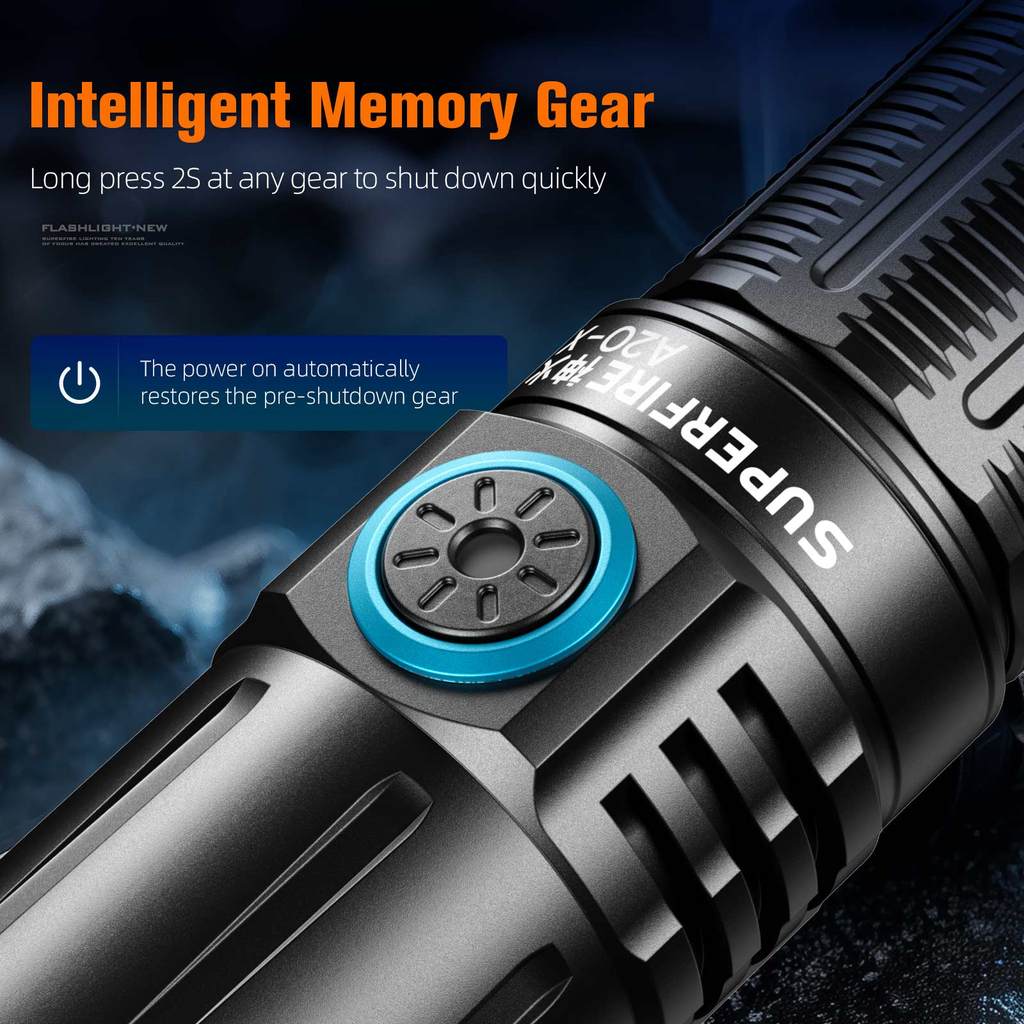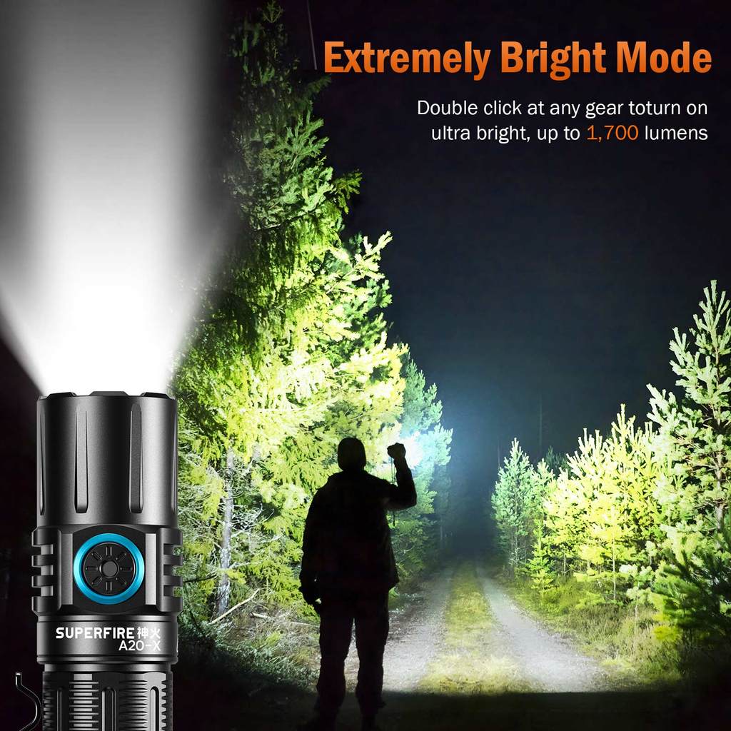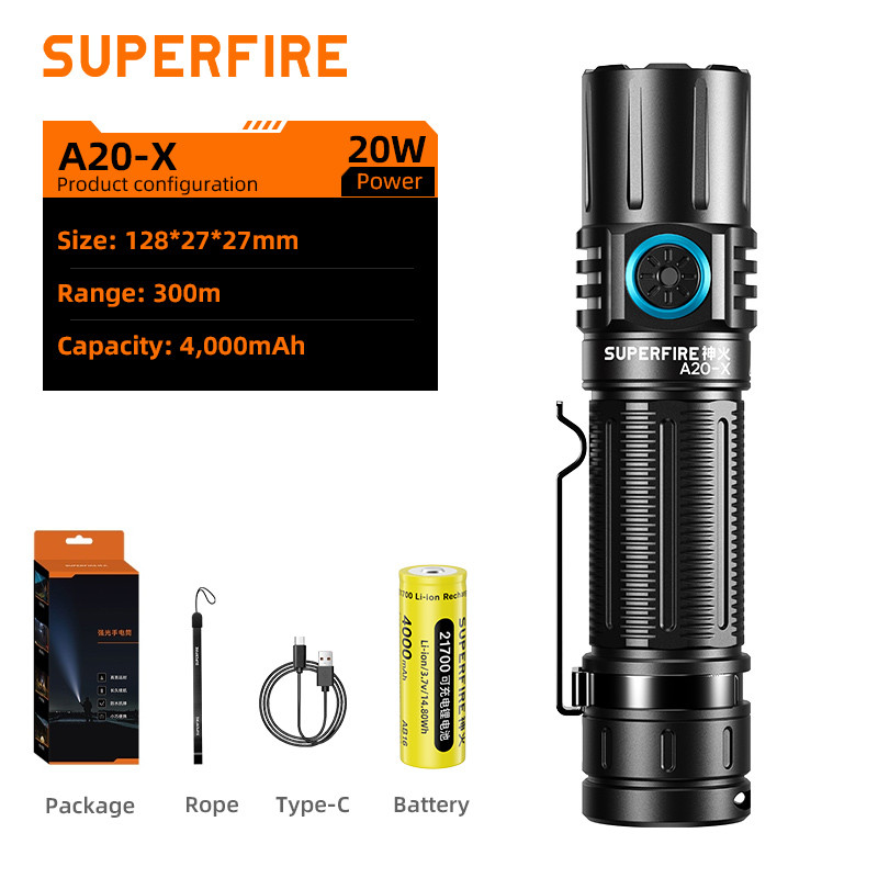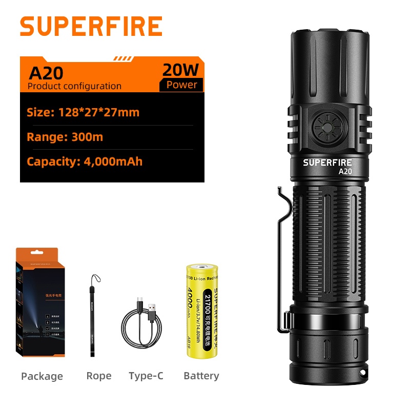 SUPERFIRE A20 20W Flashlight High-power Super Bright Type-C Rechargeble Portable Waterproof Torchlight For Camping Hiking ExpeditionWork Light