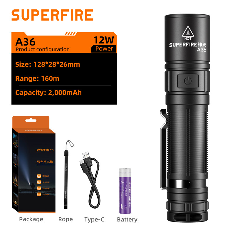 SUPERFIRE A20 20W Flashlight High-power Super Bright Type-C Rechargeble Portable Waterproof Torchlight For Camping Hiking Expedition