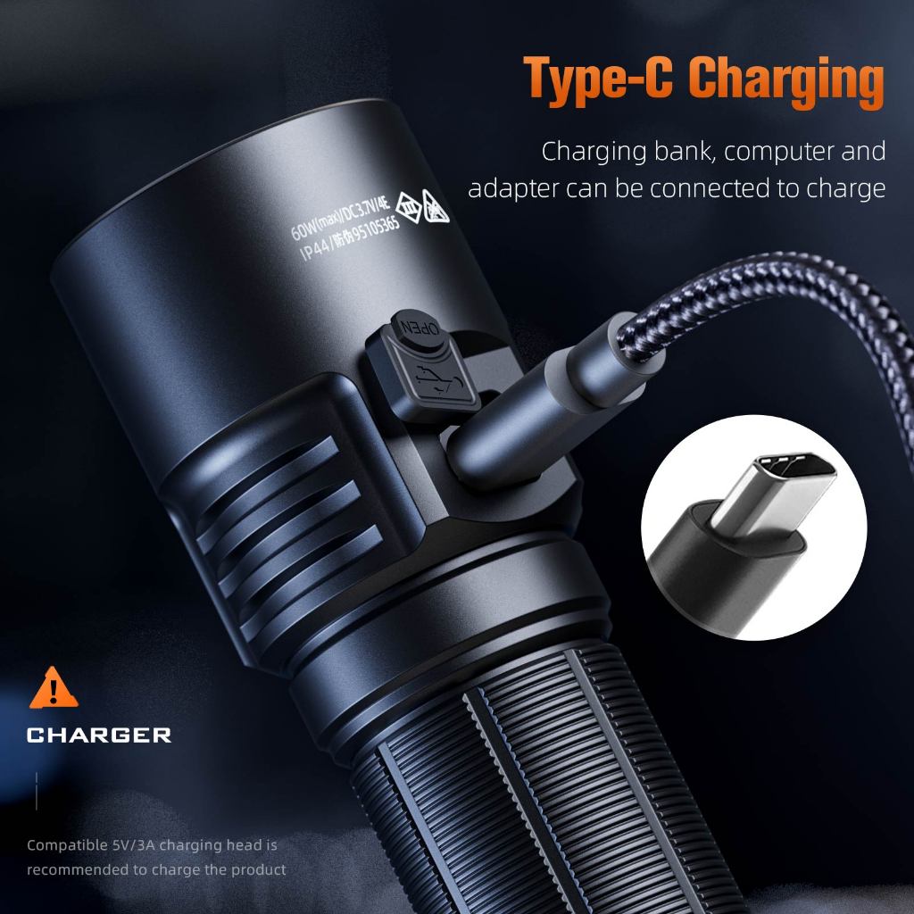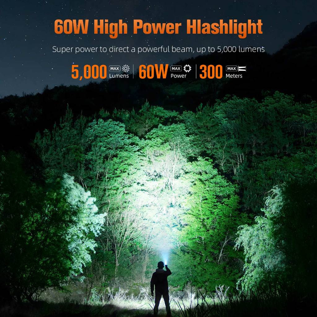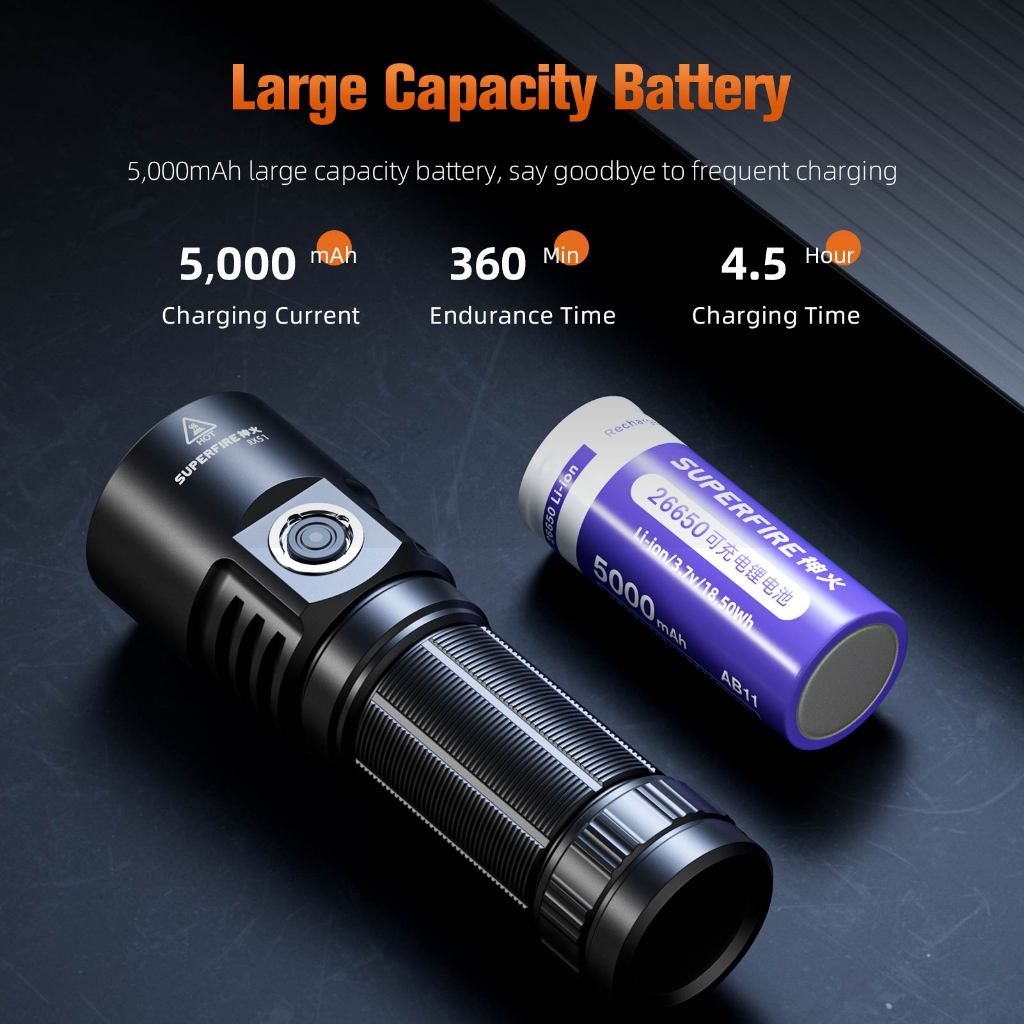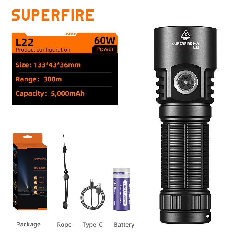 SUPERFIRE L22 60W LED Flashlight Ultra Bright 5000 Lumen Torch Power Bank Function Rechargeable Self Defense Lantern