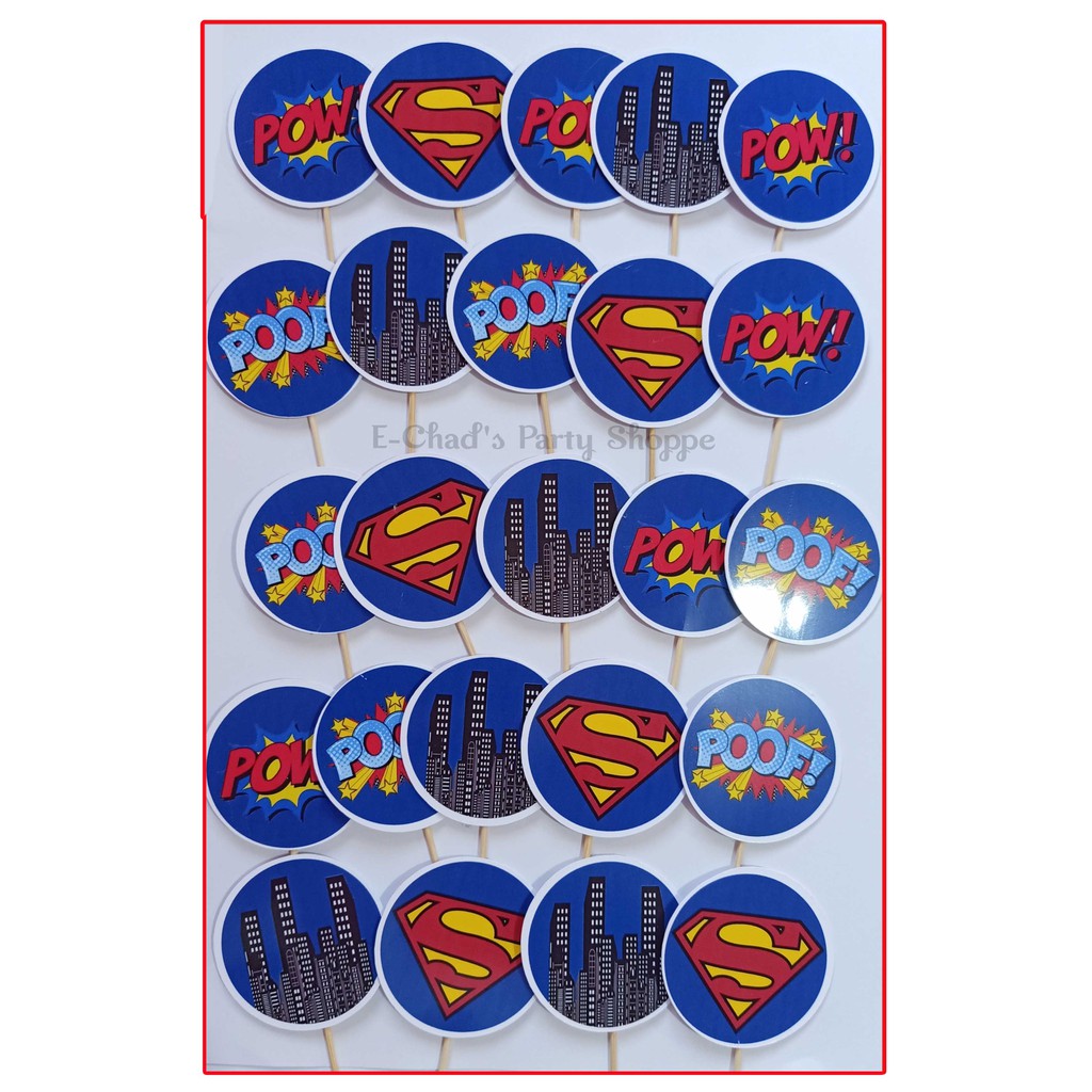 SUPERMAN CAKE TOPPER SET (1 cake topper & 24 pcs. cupcake topper)