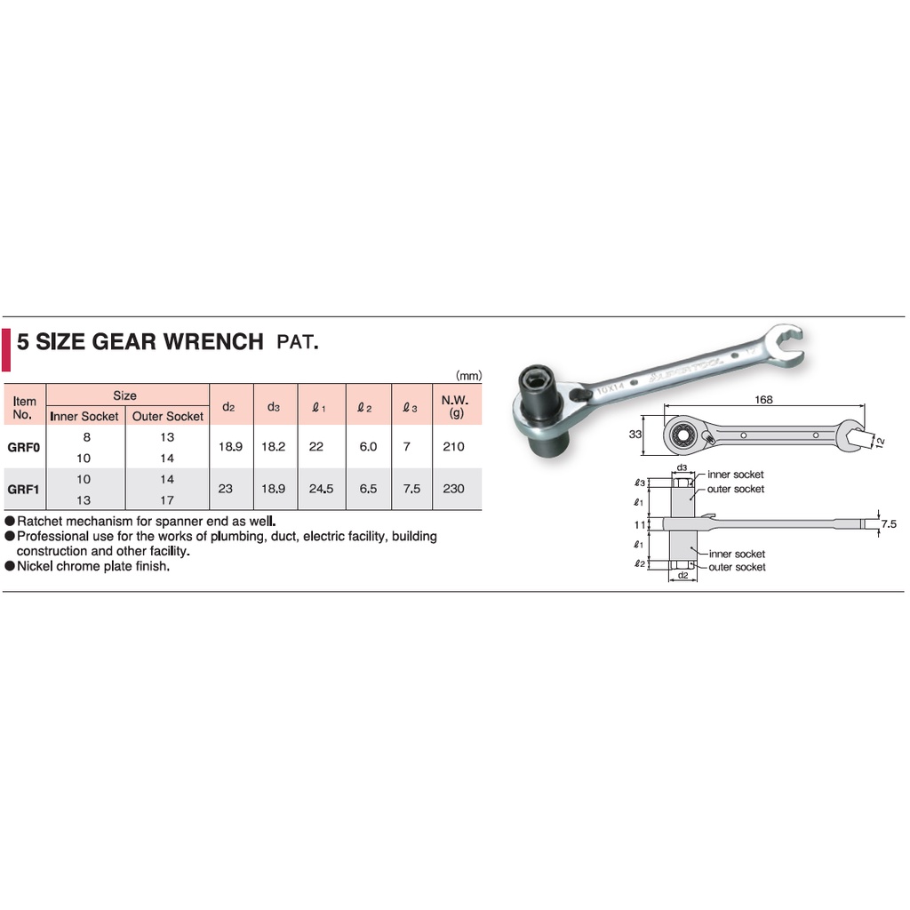 SUPERTOOL "5 SIZES" Ratchet Wrench (JAPAN BRAND)