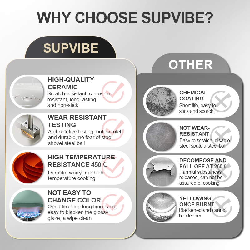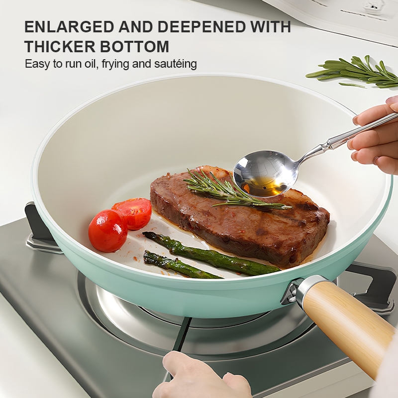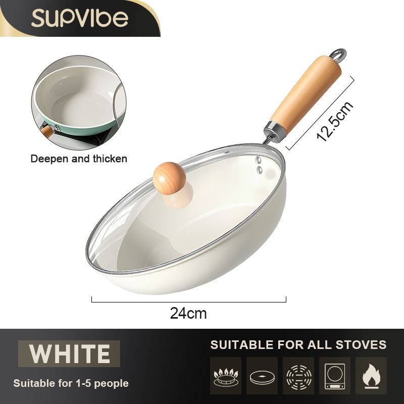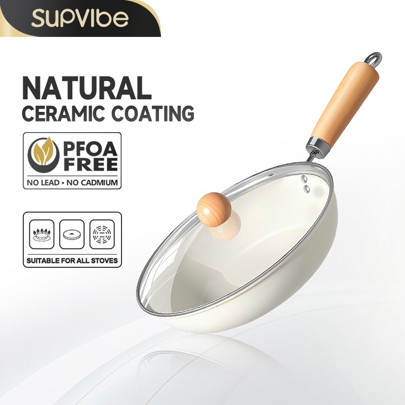 SUPVIBE Ceramic Frying Pan Non Stick With Lid No PFOA Suitable For All Stoves 24CM