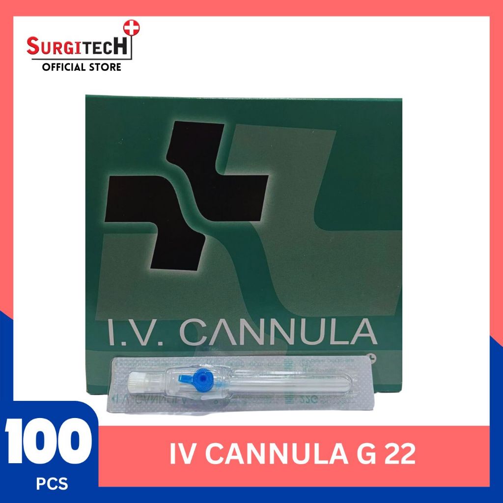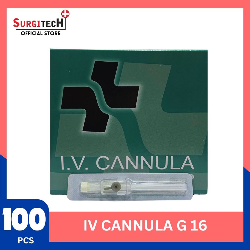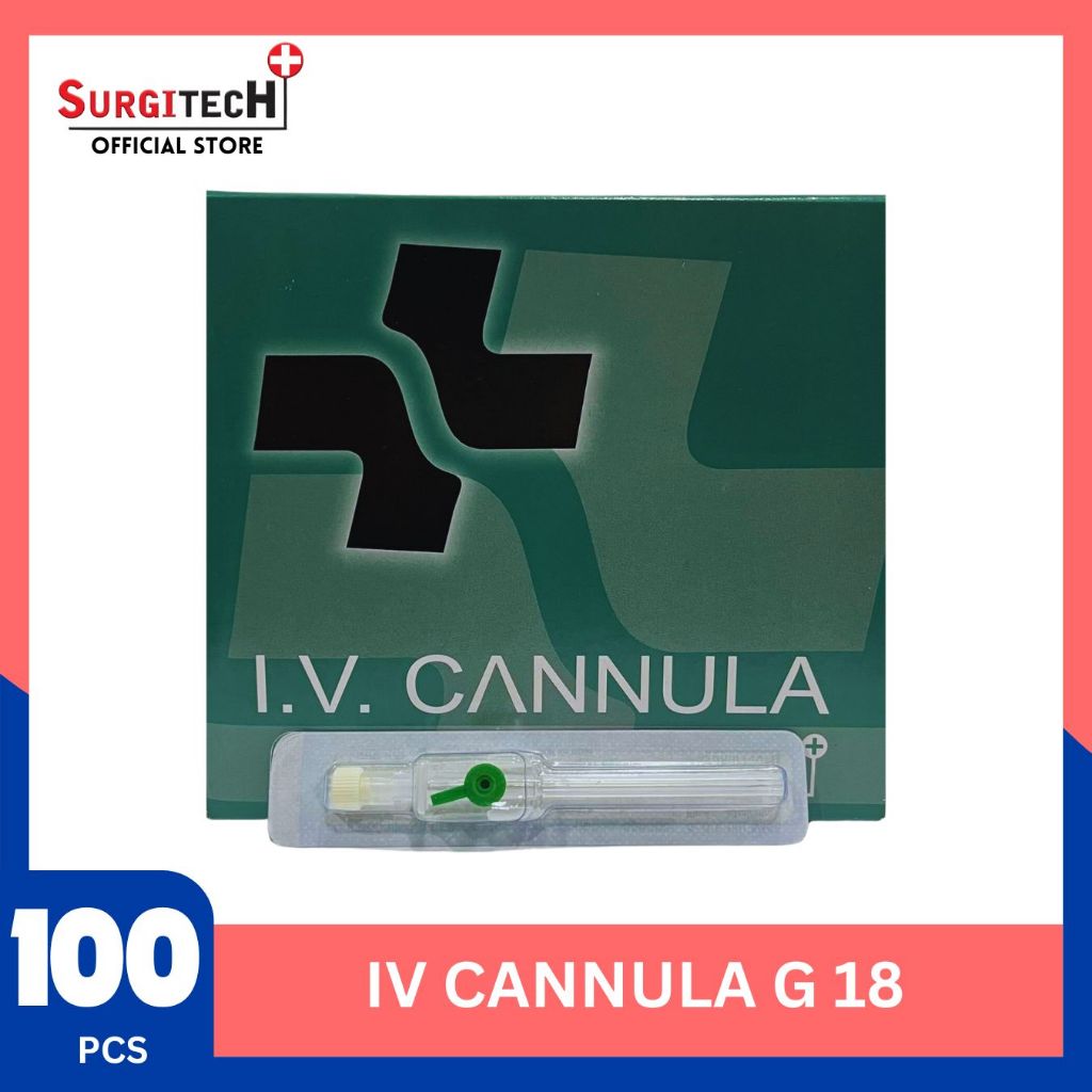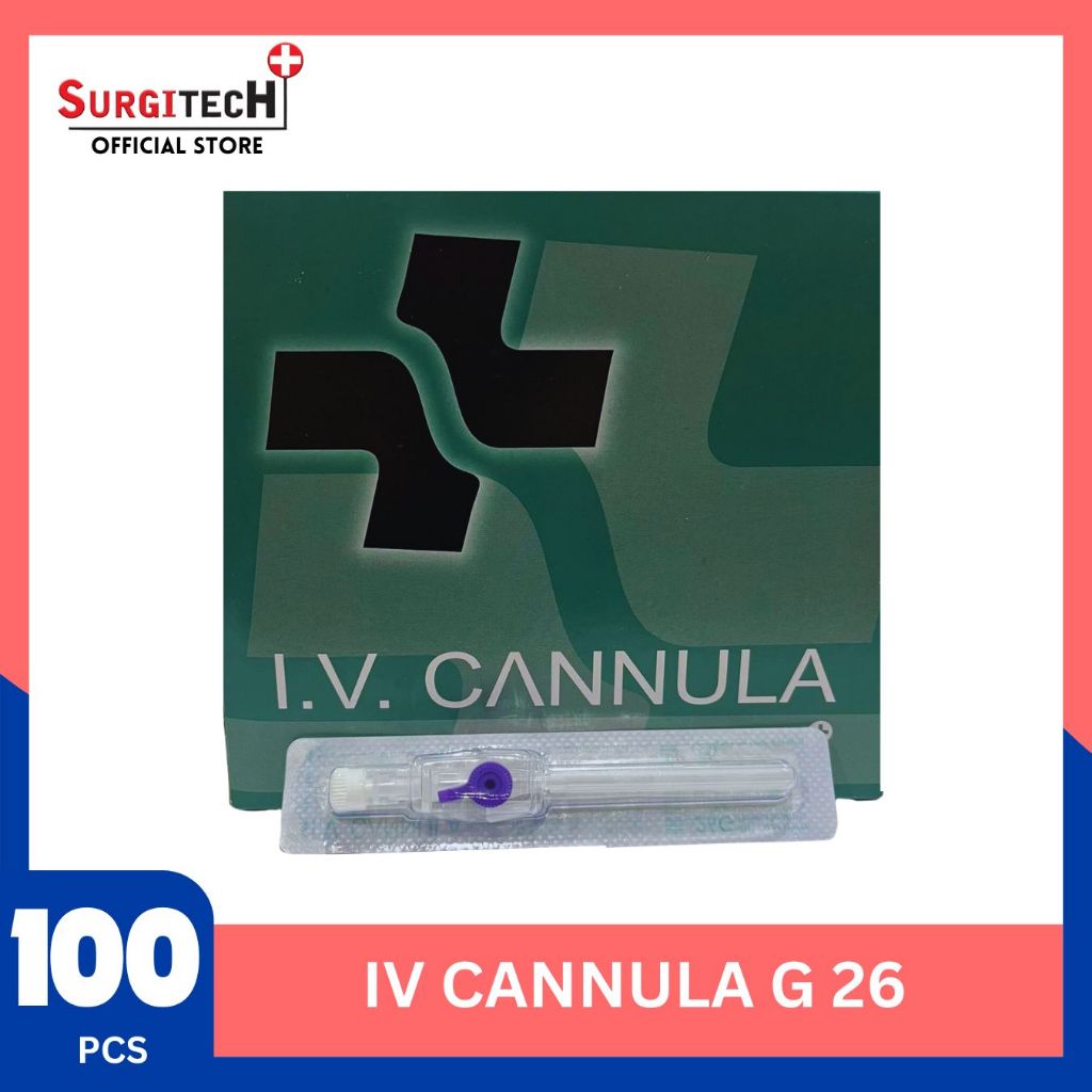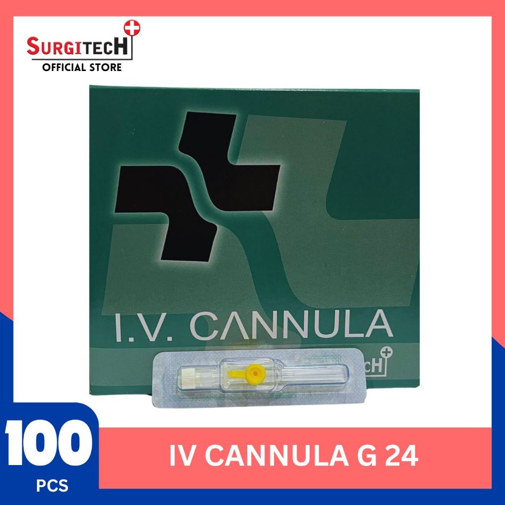 SURGITECH 1BOX I.V. Cannula ( 16G/ 18G/ 20G/ 22G/ 24G/ 26G) W/ Wings & Injection Port (100PCS)