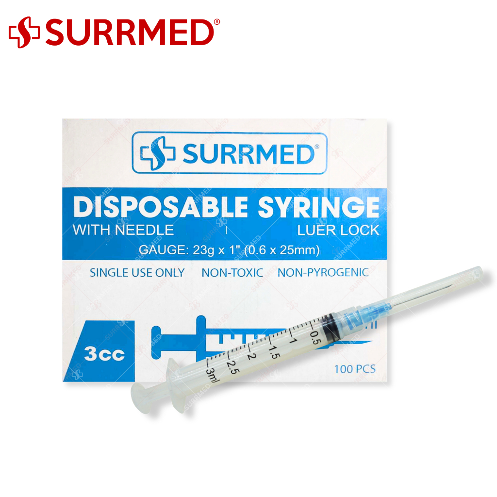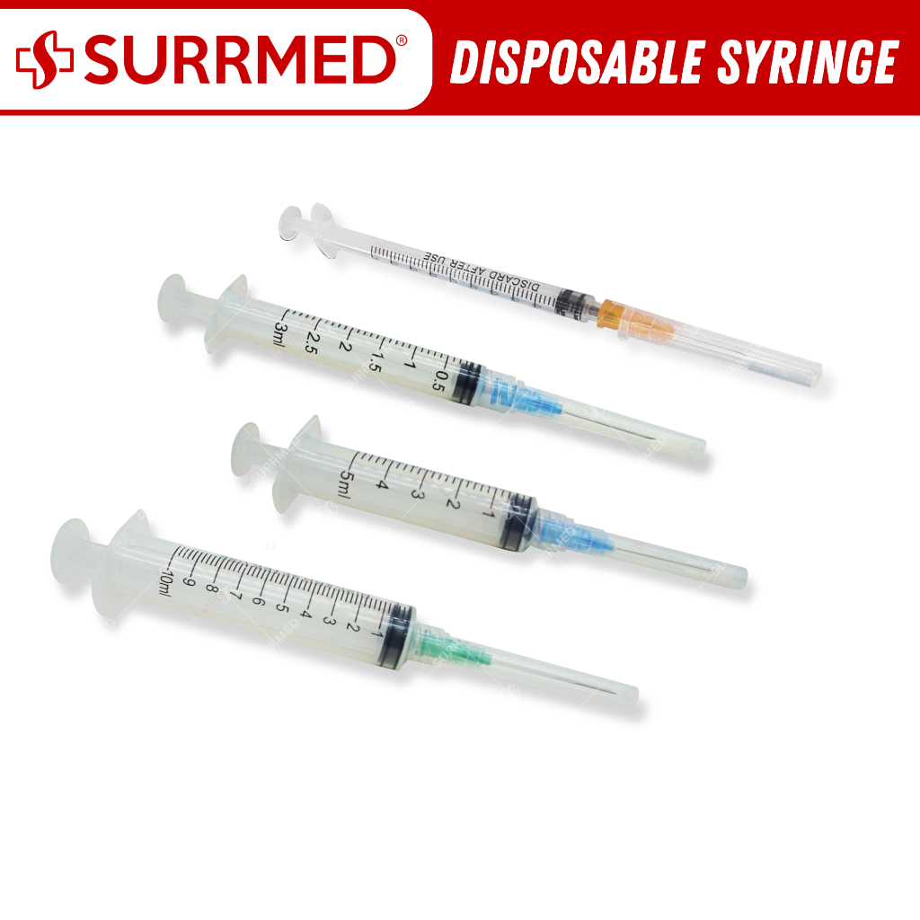 SURRMED Disposable Syringe 1cc, 3cc, 5cc, 10cc (Box of 100) | High-Quality Medical Syringes