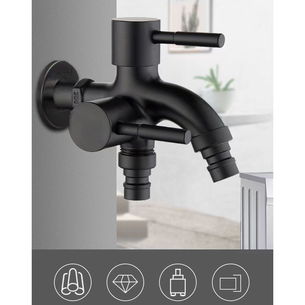 SUS304 Black 2 Way Faucet Stainless Steel Two Way Function Shower Washer Tap Washing Machine Faucet