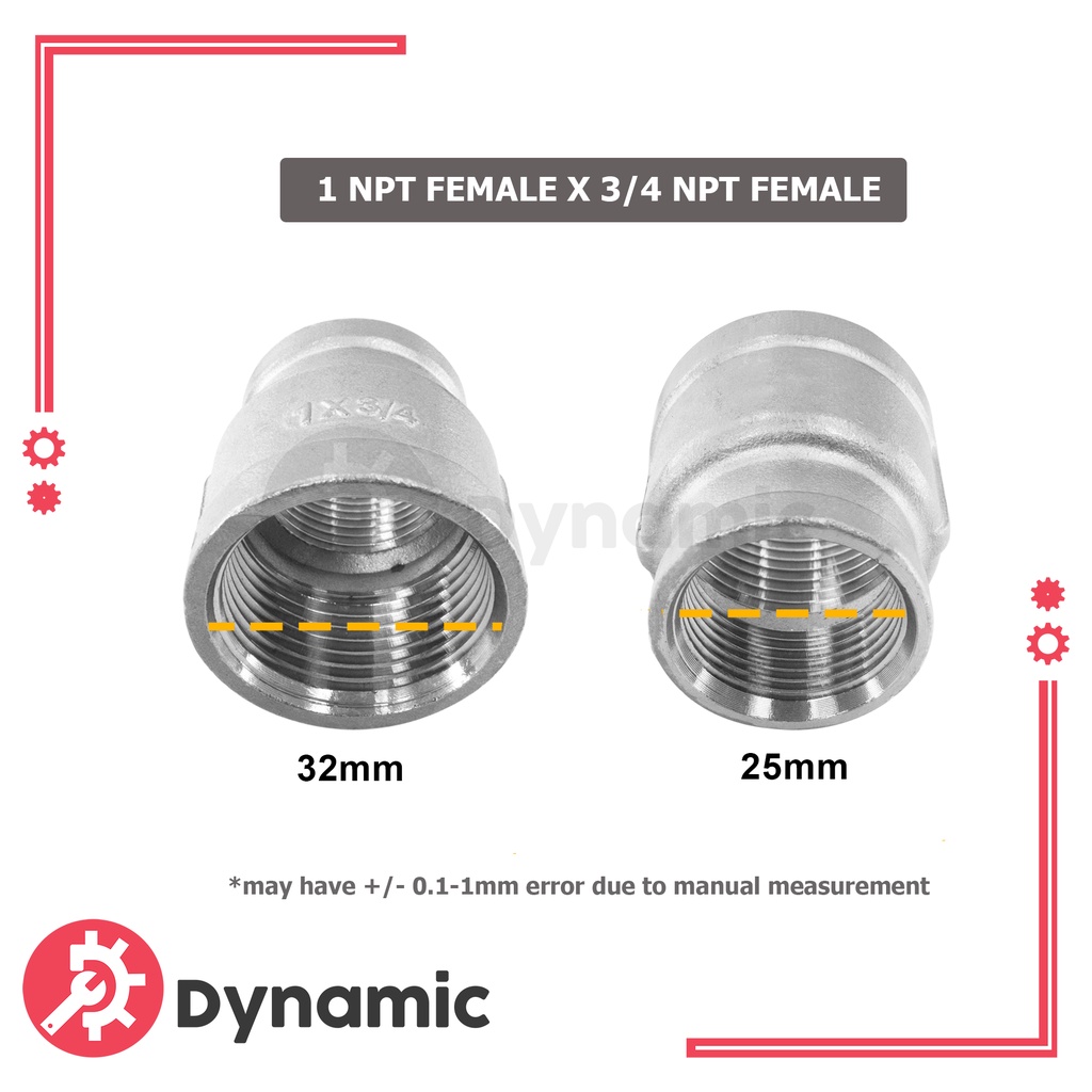 SUS304 Stainless Coupling Reducer 1 NPT ( +/- 32mm ) Female x 3/4 NPT ( +/- 25mm ) Female Adapter