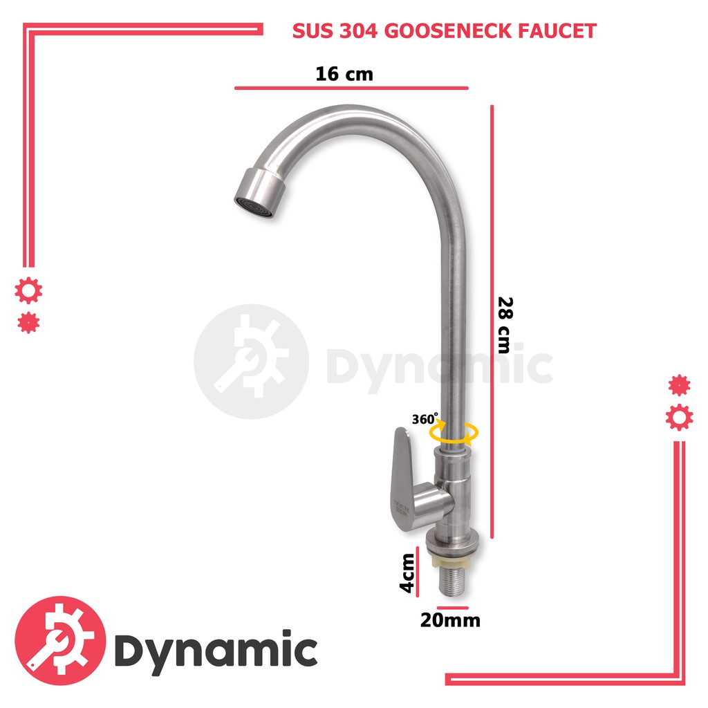 SUS304 Stainless Gooseneck Kitchen Sink Faucet Arc Type Bar Sink Flat Goose Neck Gripo Vertical Tap