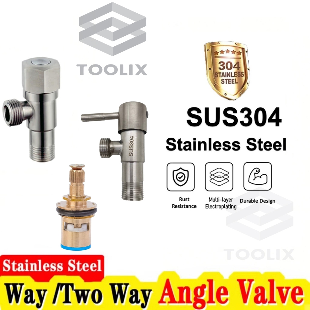 304 Stainless Steel Two Way Angle Valve 1/2" Angle Valve with Ring Cover for Faucet Toilet Set