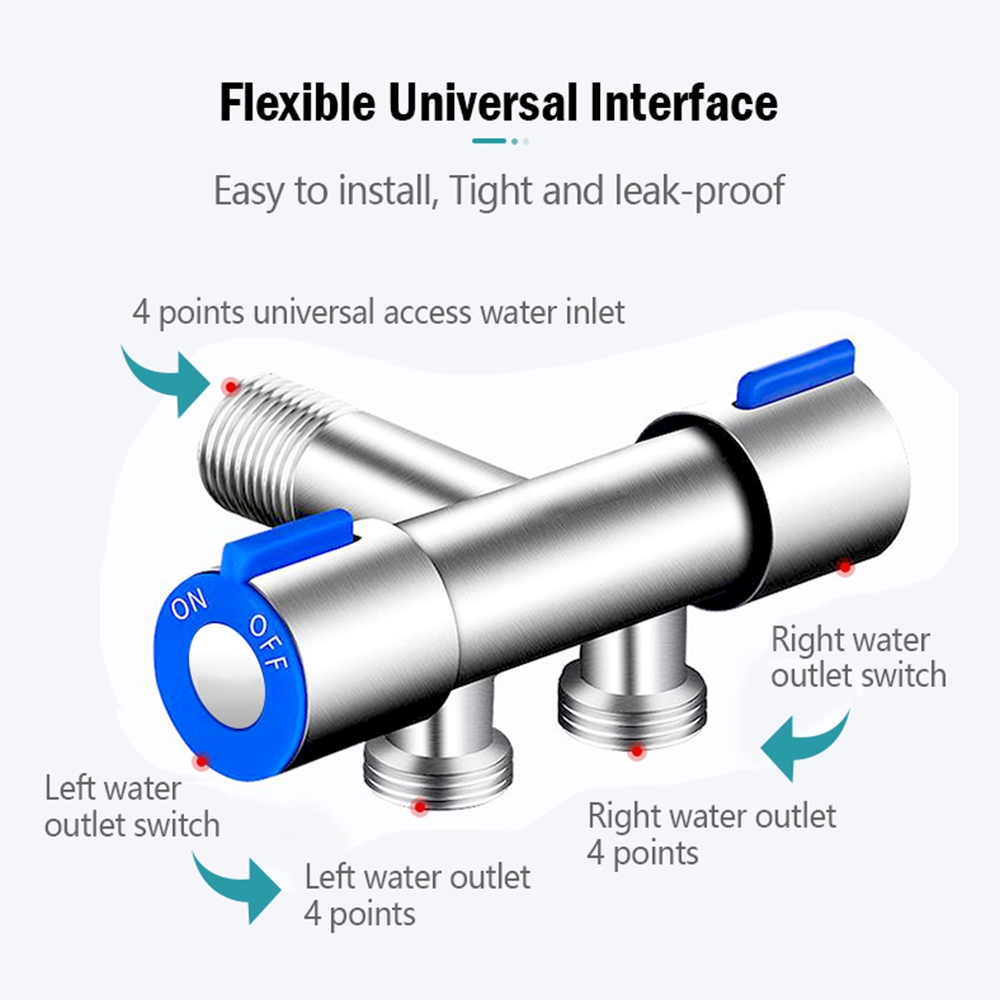 SUS304 Two Way Angle Valve 1/2" Angle Valve Multi-function Stainless Faucet for with Faucet Toilet
