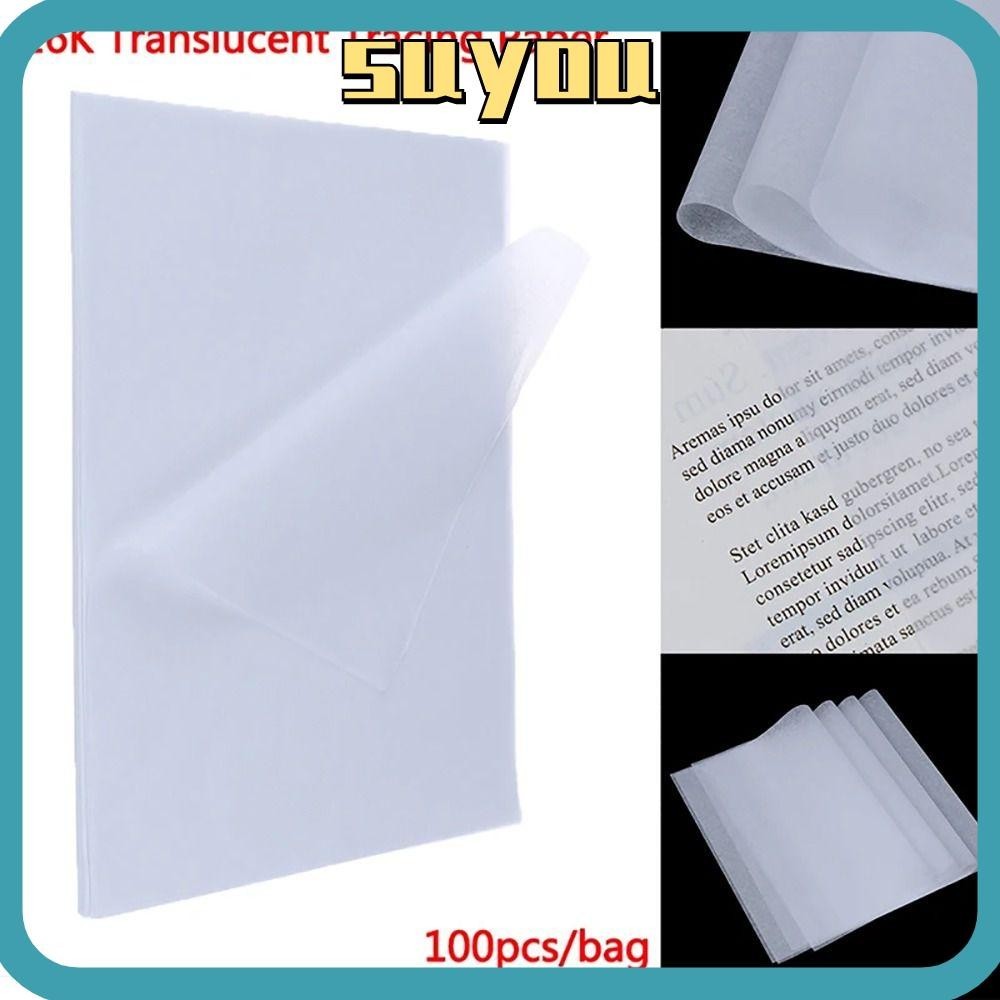 SUYO 100Pcs A4 Tracing Paper, Office Art Supplies For Student Sketching Paper, Calligraphy Writing White Translucent Drawing Sheet Drawing Copy Paper
