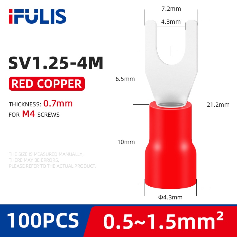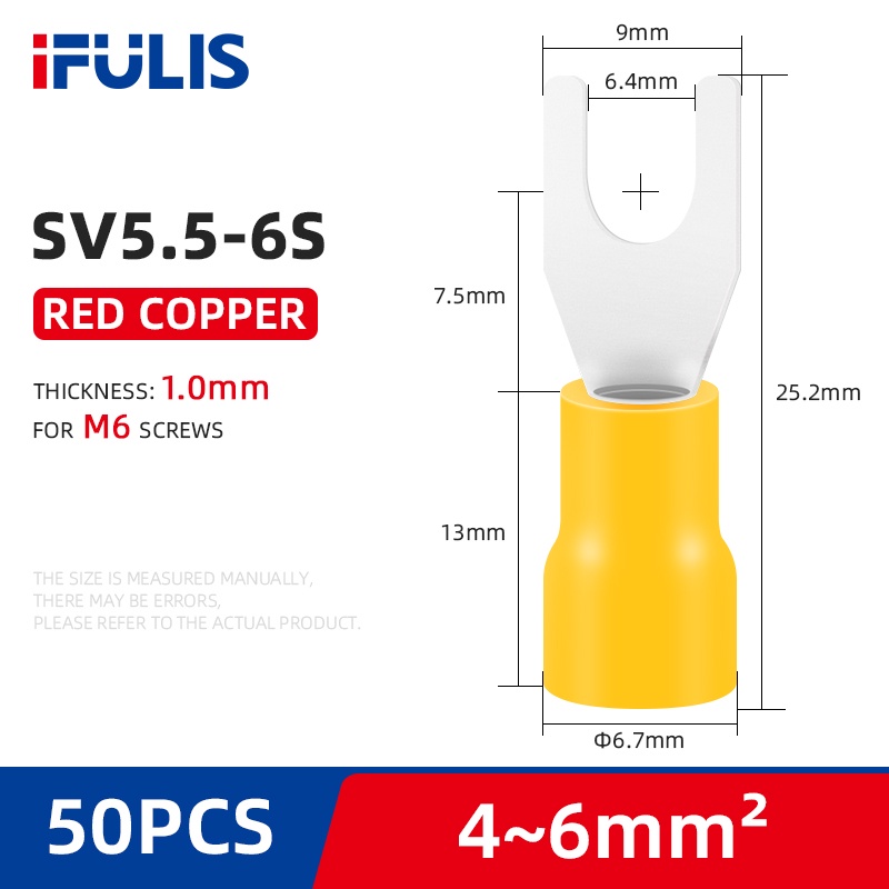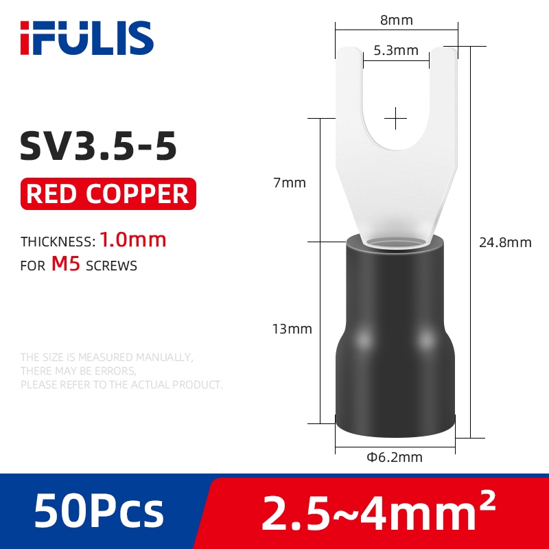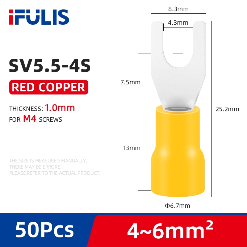SV Spade Terminals Insulated Cable Connector Electrical Wire Crimp SV1.25 SV2 SV3.5 SV5.5 Butt Ring Fork Ring Lugs Rolled