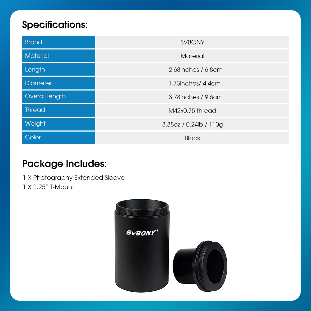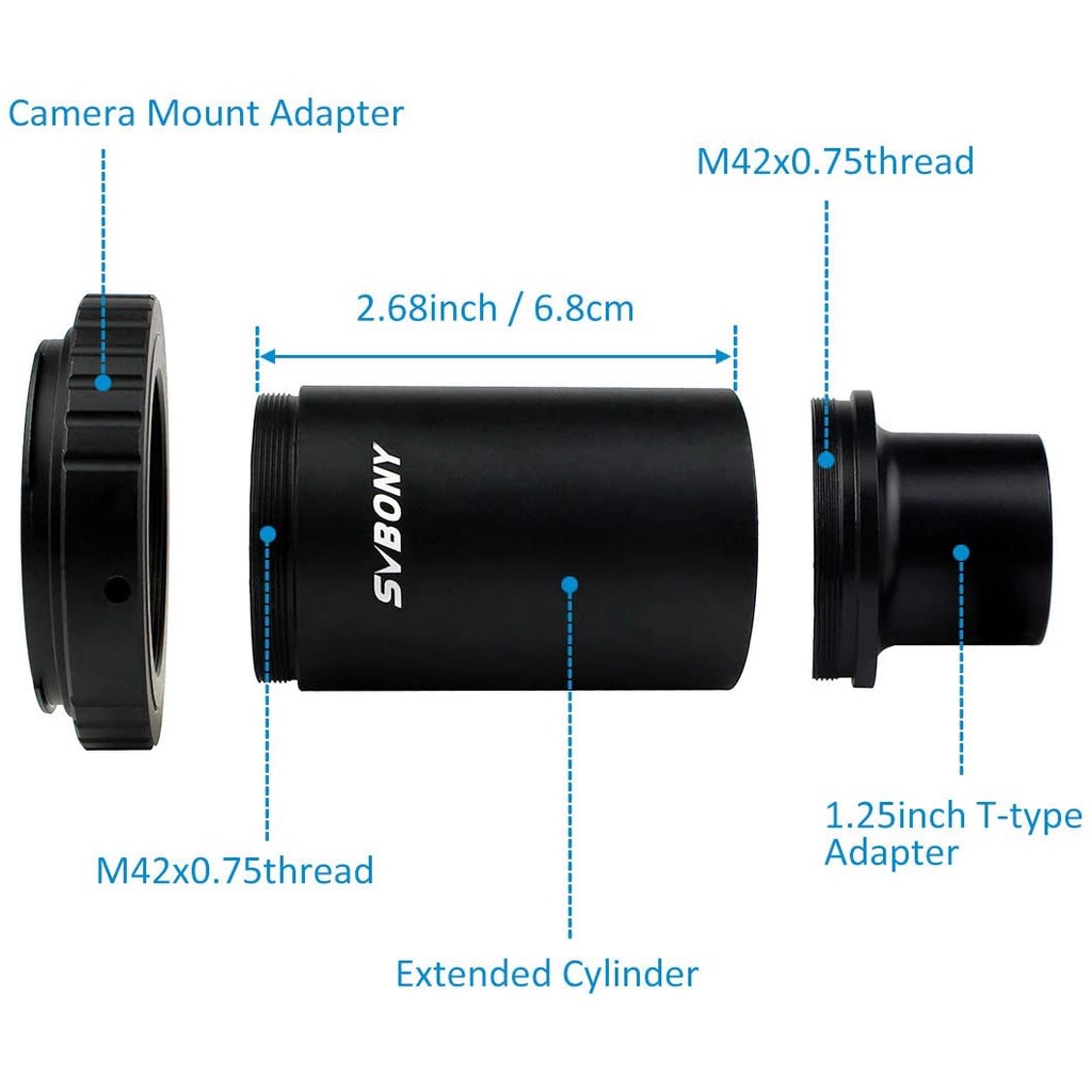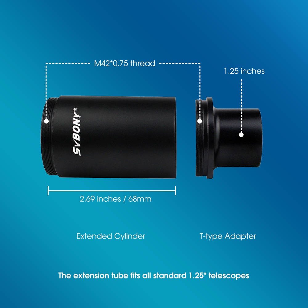 SVBONY CA1 Astronomical Telescope Adapter Extension Tube SLR Camera Photography Sleeve All-Metal 1.25 Inch Compatible for DSLR Camera Photography