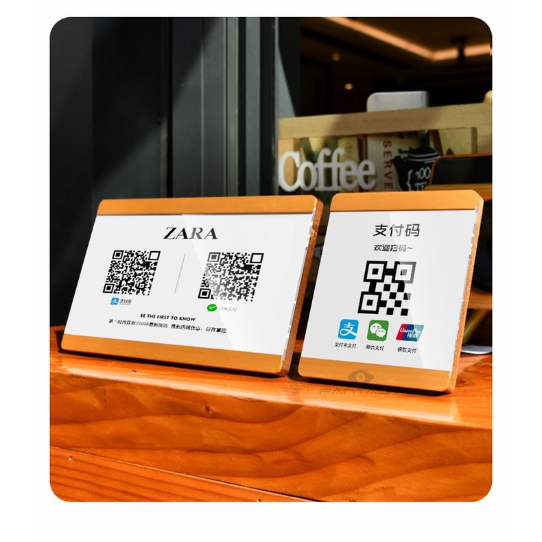 SVIAO Creative Solid Wood QR Code Table Card Display Ad Photo Frame Payment Scan Code Display Stand