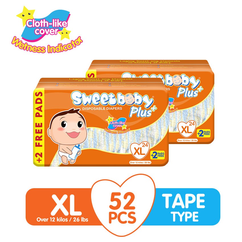 SWEETBABY PLUS TAPED DIAPER - BIG PACK - EXTRA LARGE - 24+2 PADS X 2 PACKS (52 PADS)