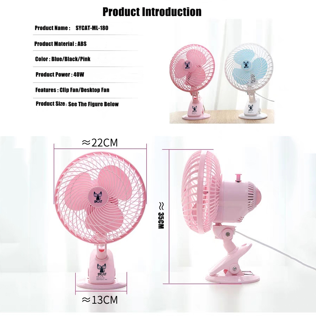 SYCAT 40W Clip Fan With Stand Electric Fan Two-Speed Wind Desk Fan Clip Fan Shaking Head Stand Fan