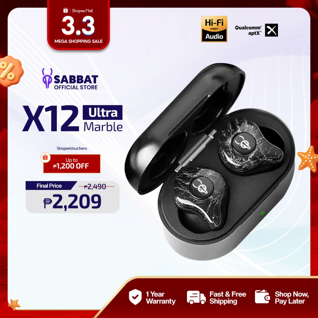 Sabbat X12 Ultra Marble Series Bluetooth Earphones | True Wireless Stereo Qualcomm | Noise Reduction
