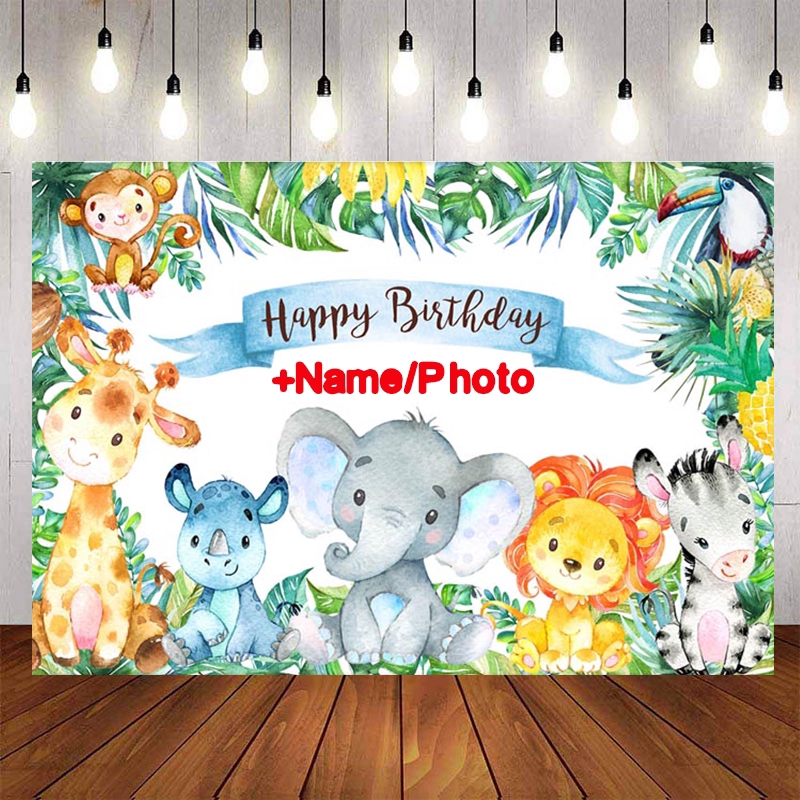 Safari Birthday Party Backdrop Jungle Cartoon Animals Baby Shower Child Birthday Photo Background Decorations Photocall Custom Name Photo