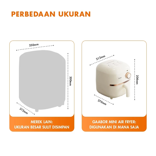 MESIN Gaabor mini Air Fryer 2L Low Watt 600W Non-Stick Oil-Free Frying Machine / AF20-YE01A