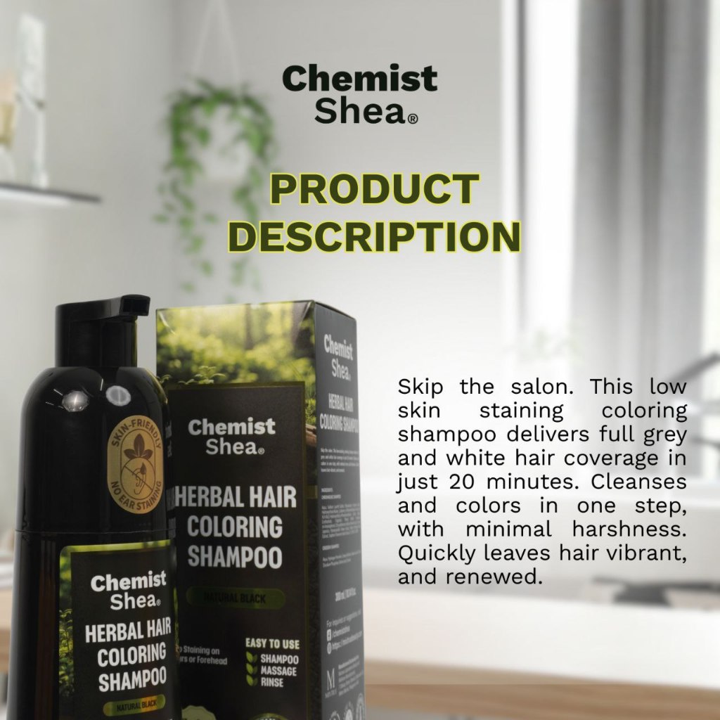 HERBAL HAIR COLORING SHAMPOO by Chemist Shea - Covers gray & white hair | Low skin-staining formula