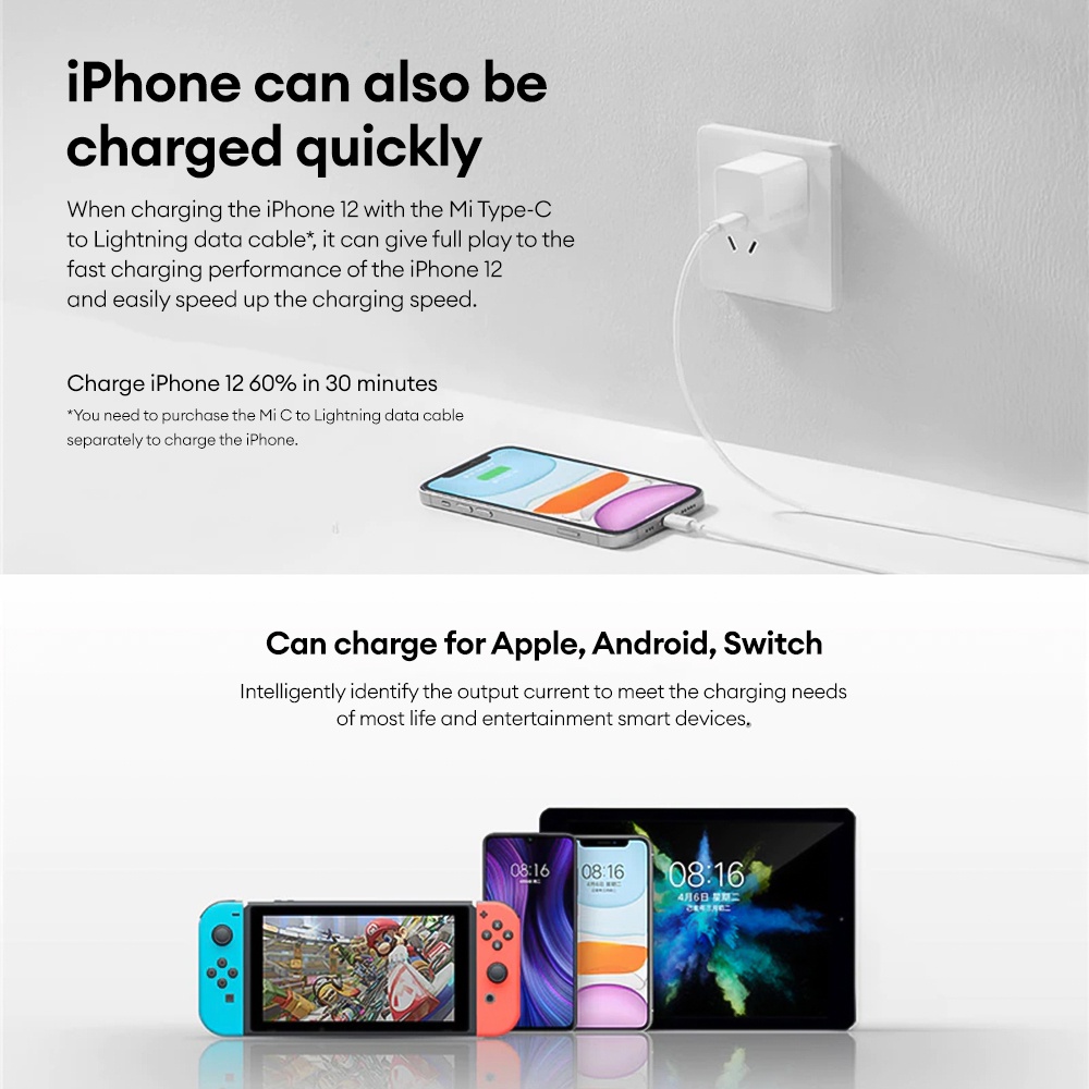 Xiaomi 33W Max GaN Fast Charge USB-C to Type C Cable Set Charger US plug Model: AD33G