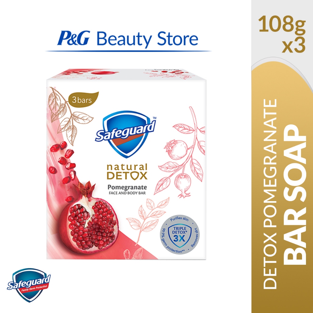 Safeguard Antibacterial Detox Face and Body Soap Bar Pomegranate 108gx3