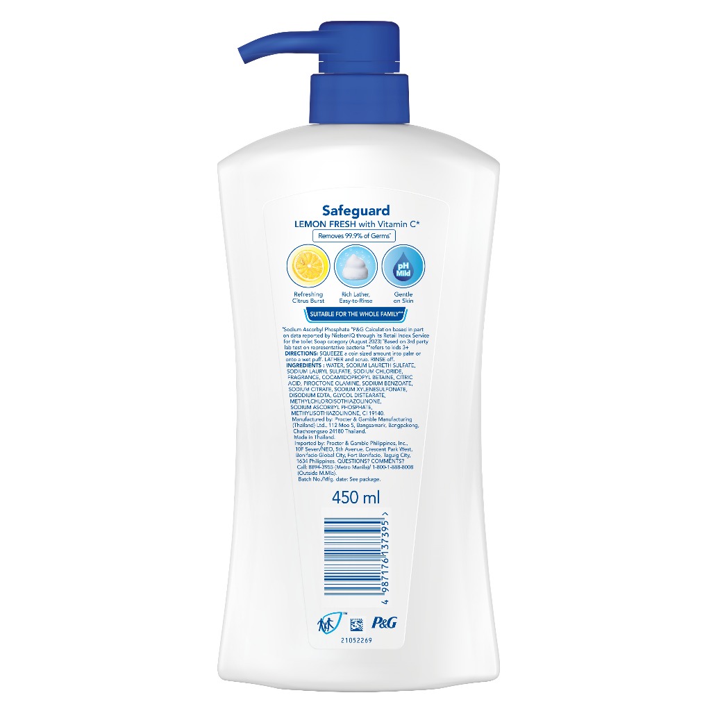 Safeguard Antibacterial Soap Body Wash Lemon Fresh with Vitamin C 450ml
