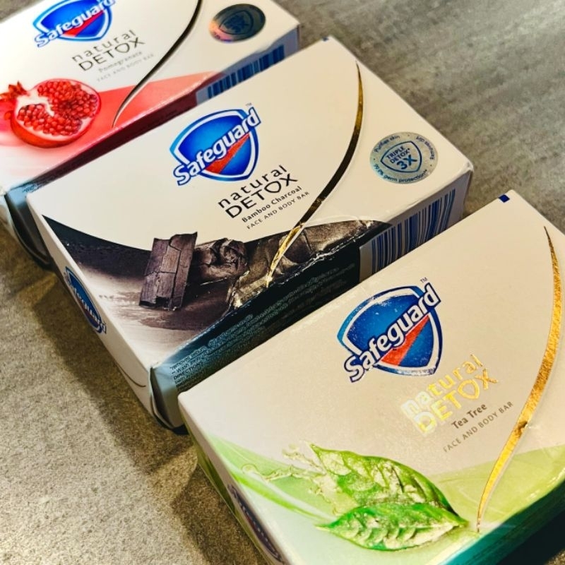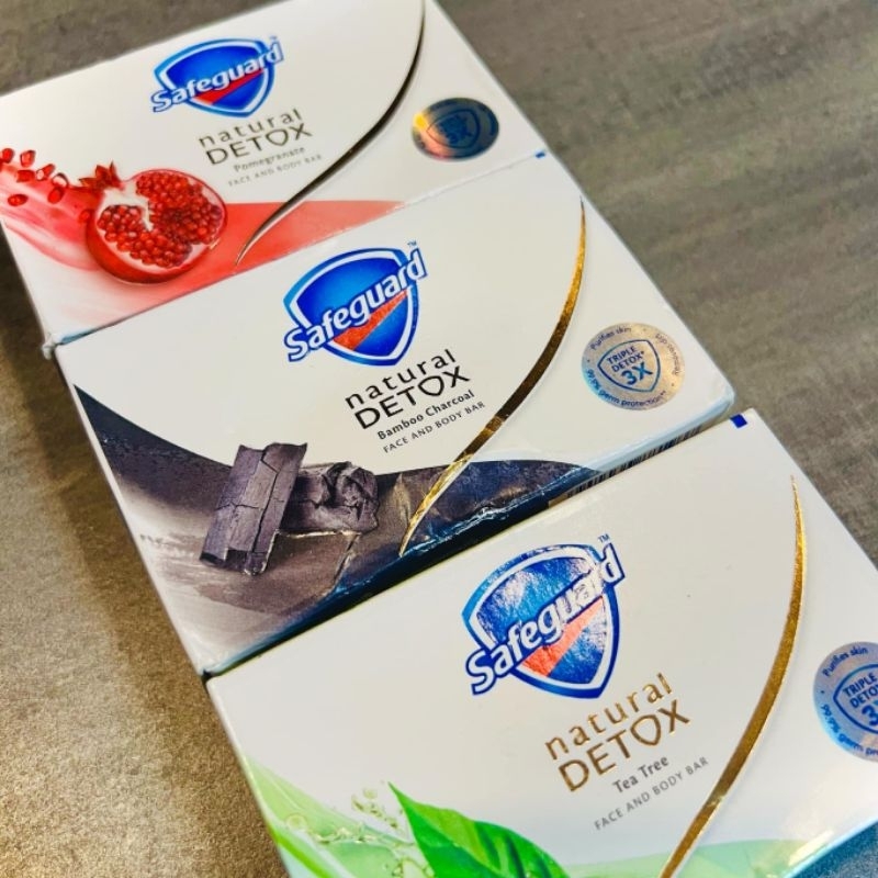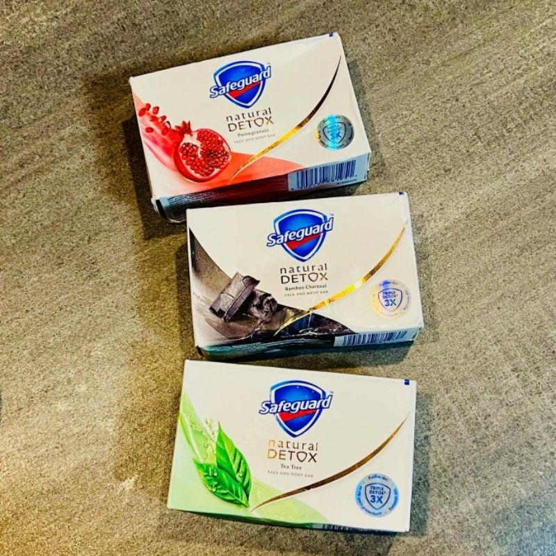 Safeguard Detox face and body bar soap pomegranate bamboo charcoal tea tree 108g.