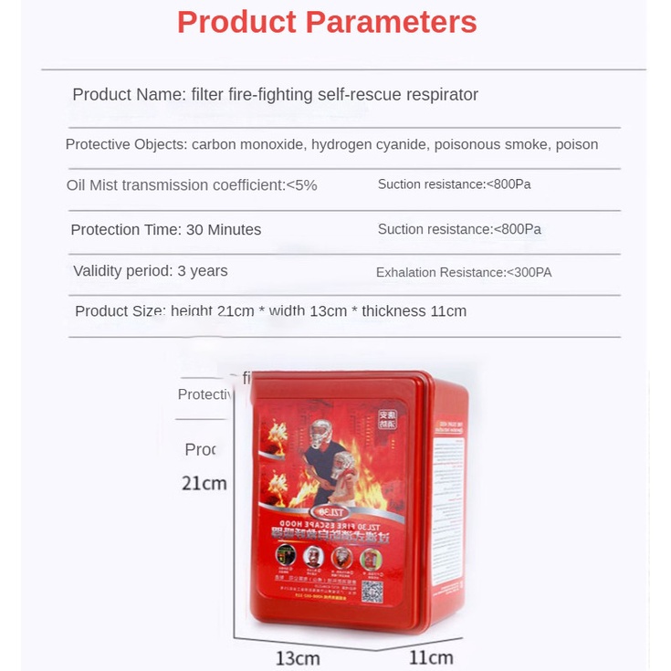 Safety Fire Escape Mask Emergency Rescue Mask Emergency Equipment Smoke Respirator