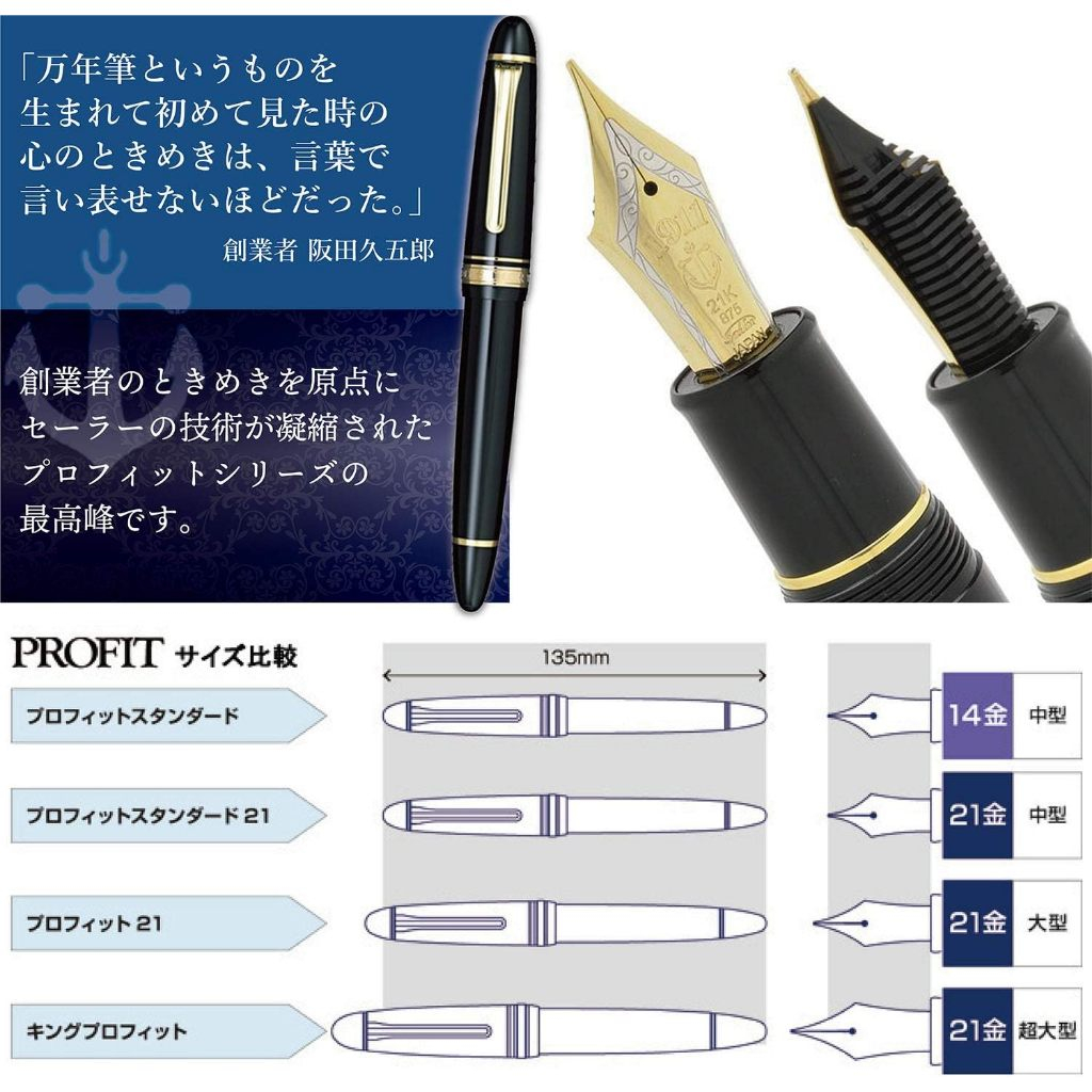 Sailor Fountain Pen King Profit ST Black 21K - 1911 KOP Gold Trim - Japanese Stationery 11-6001 Pen