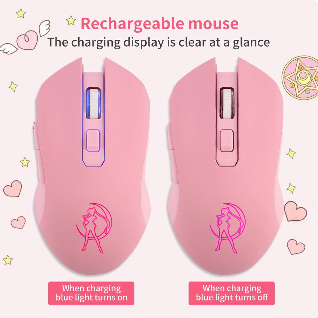Sailor Moon Gaming Mouse Wireless mouse luminous 2.4G silent wireless charging mouse game mouse wired mouse RGB mouse girl mouse 2400dpi mouse for PC