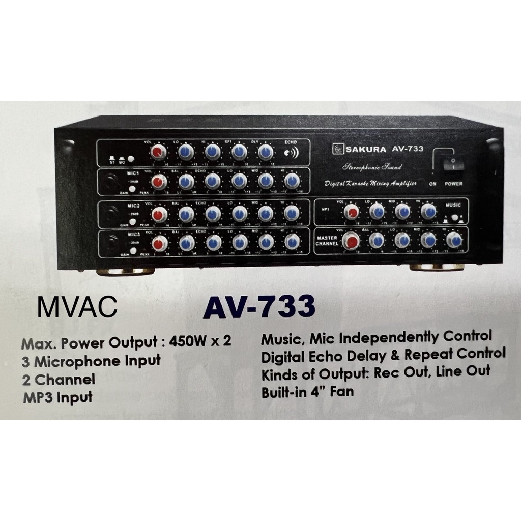 Sakura AV-733 Digital Karaoke Mixing Amplifier ( 450 Watts x 2 )