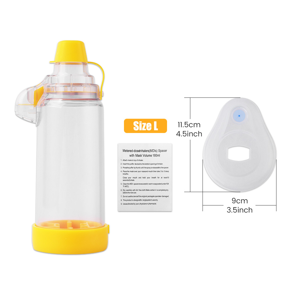 Salorie Asthma Nebulizer Aerosol Spray Bottle Chamber Silicone Asthma Inhaler Spacer for Baby Kids Adults with Mask S/M/L Size