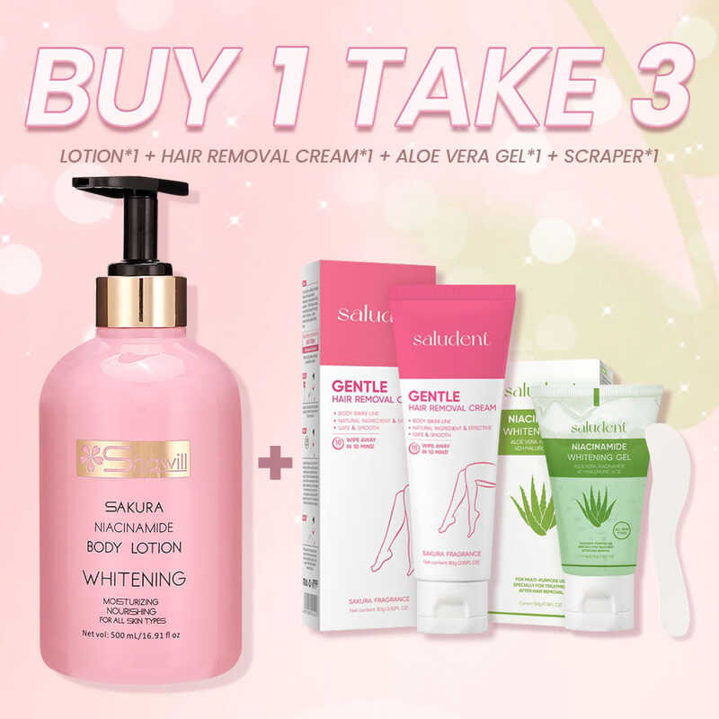 Saludent Hair Removal Cream + Aloe Vera Whitening Gel Painless Underarm Bikini Niacinamide Hyaluron